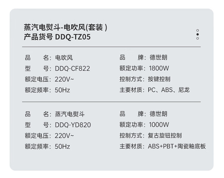德世朗(DESLON) 蒸汽电熨斗-电吹风 DDQ-TZ05 2件套 白色(单位:套)