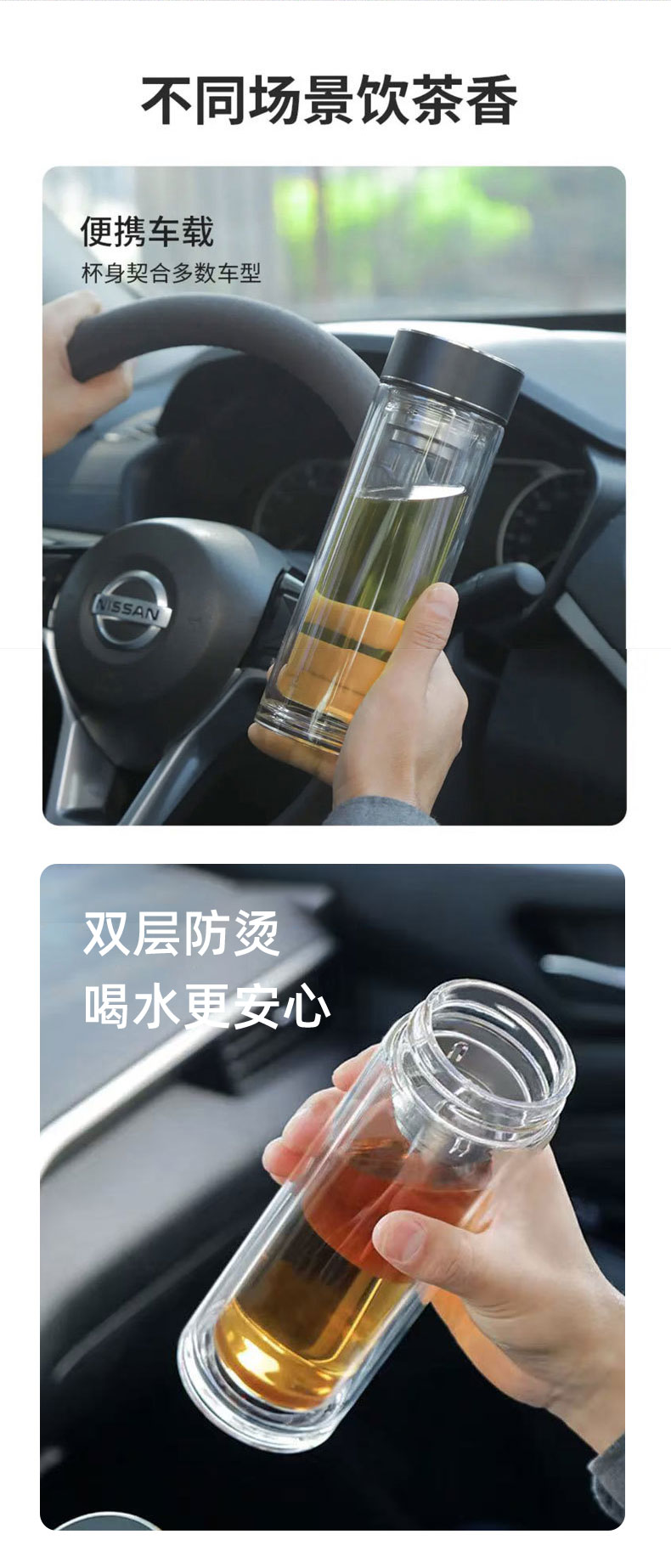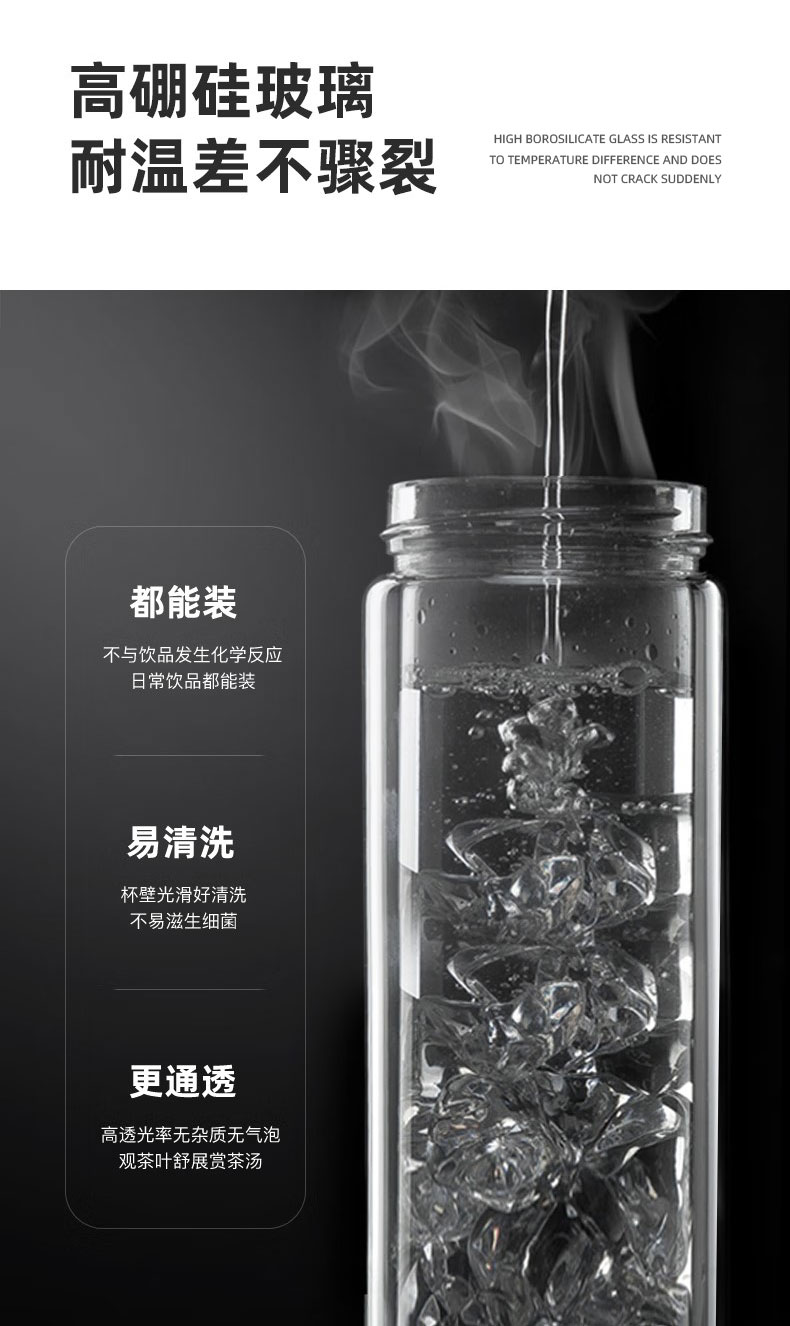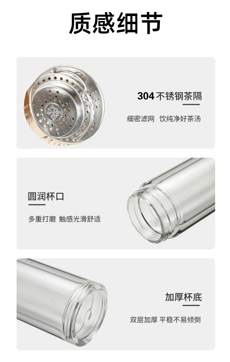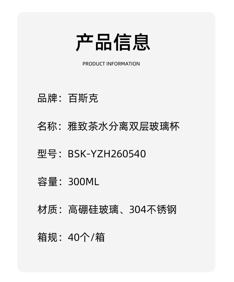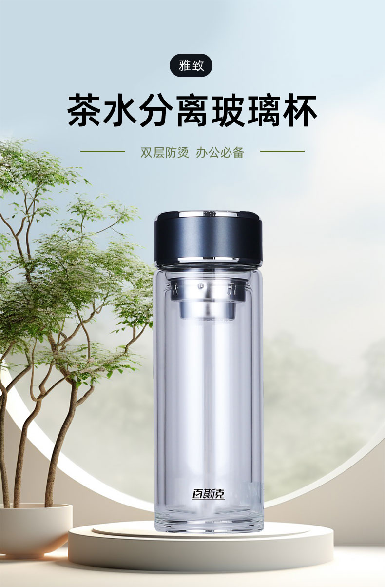 百斯克 雅致茶水分离双层玻璃杯 BSK-YZH260540 300ml 透明色(单位:个)