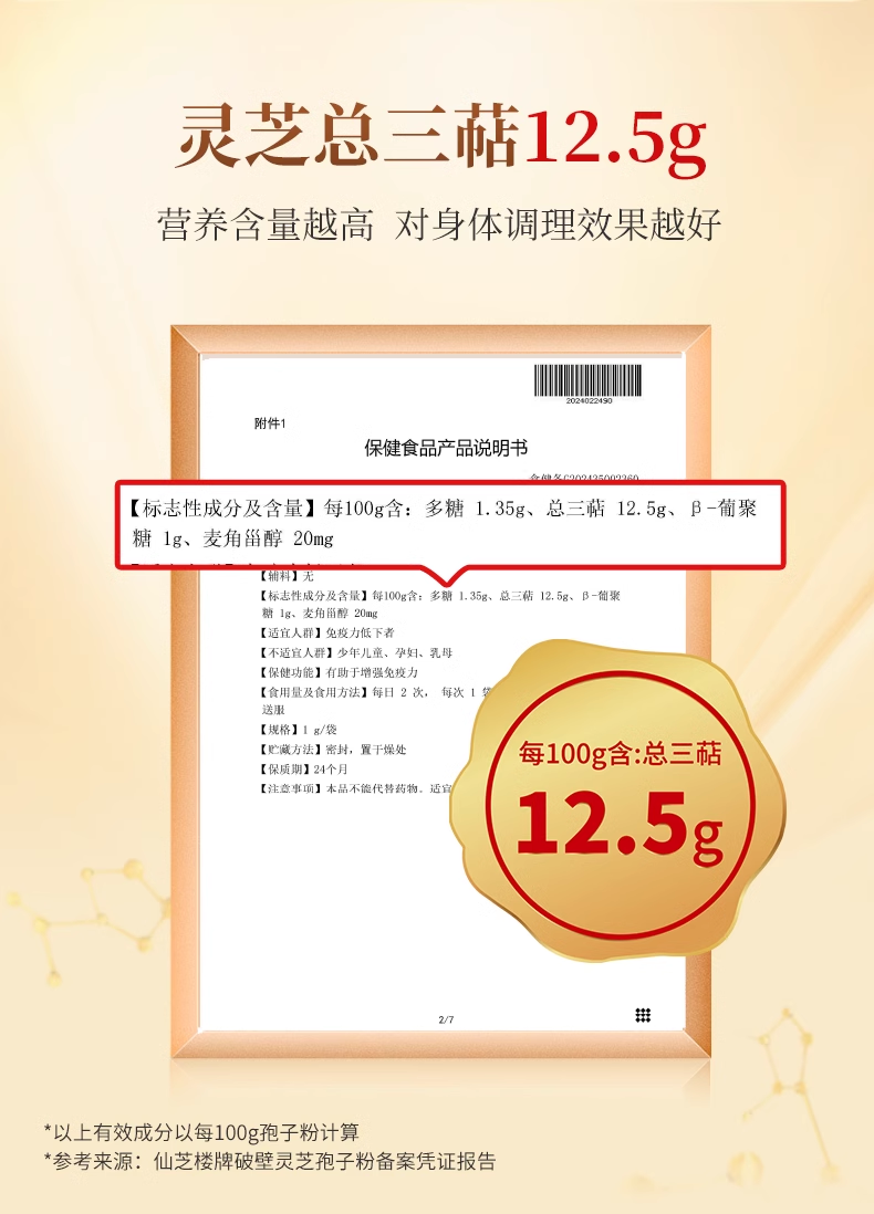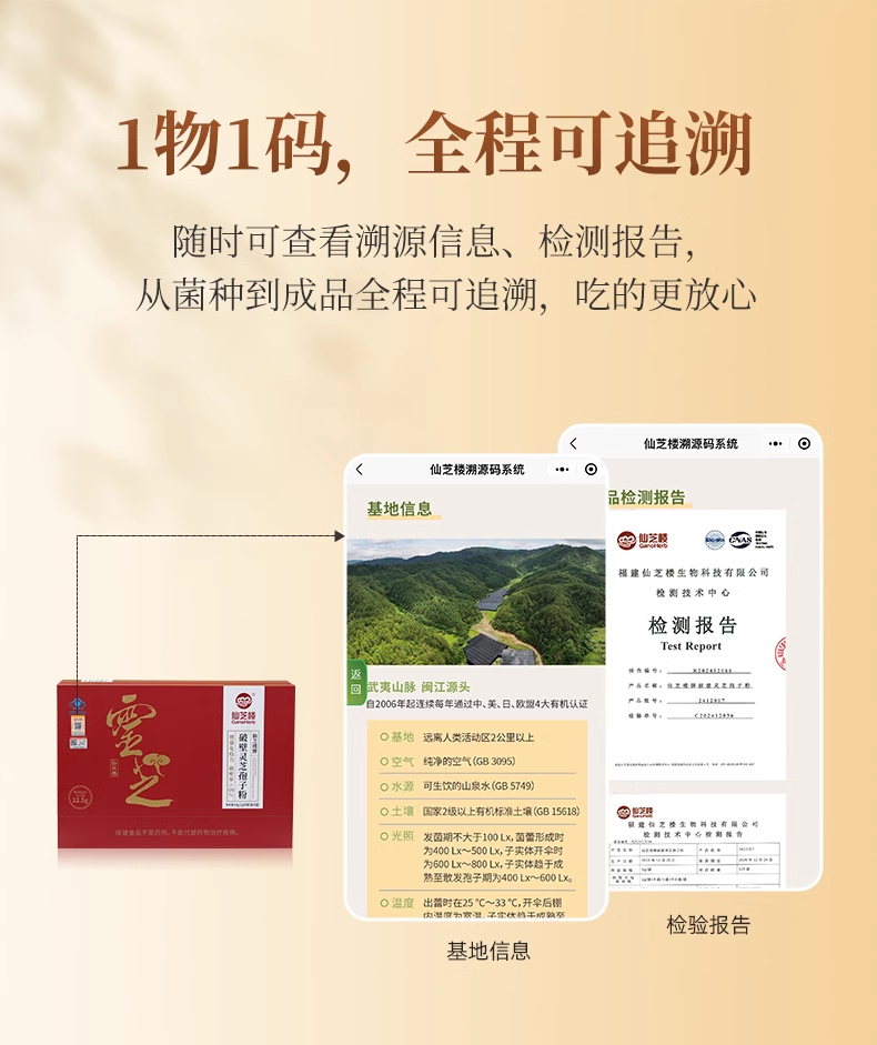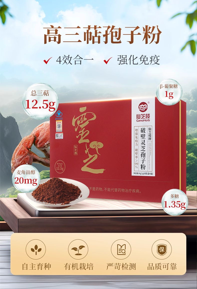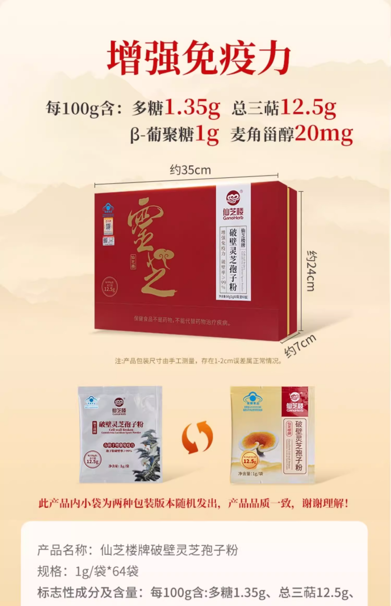 仙芝楼 破壁灵芝孢子粉 粉剂 1g/袋*64袋/盒 枫叶色(单位:盒)