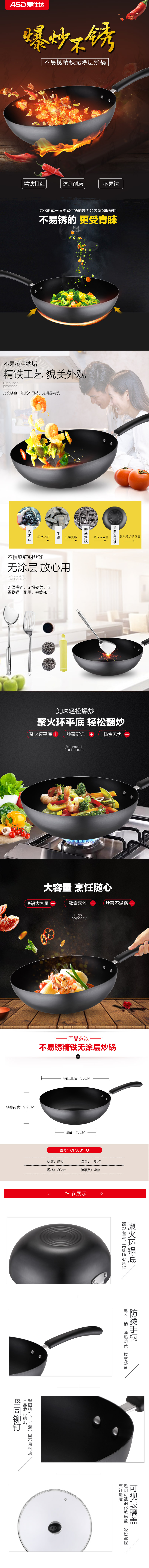 爱仕达(ASD)精铸铁锅CF30B1TG 单位:个 黑色