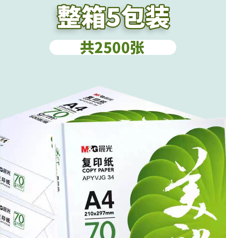 晨光(M&G) 绿美印复印纸 APYVSG34G A4 70克 500张/包 5包装 白色(单位:箱)