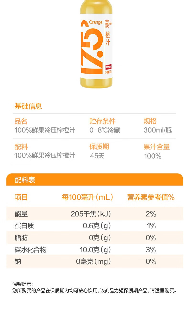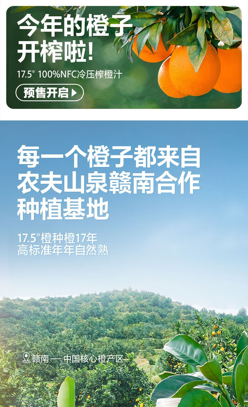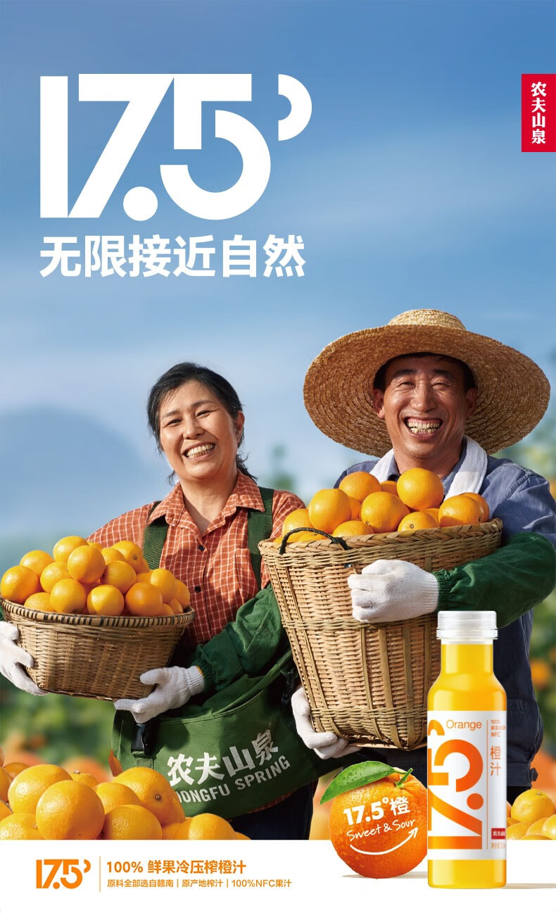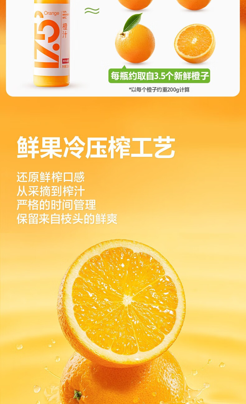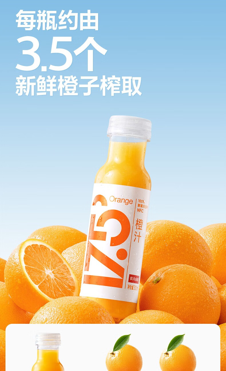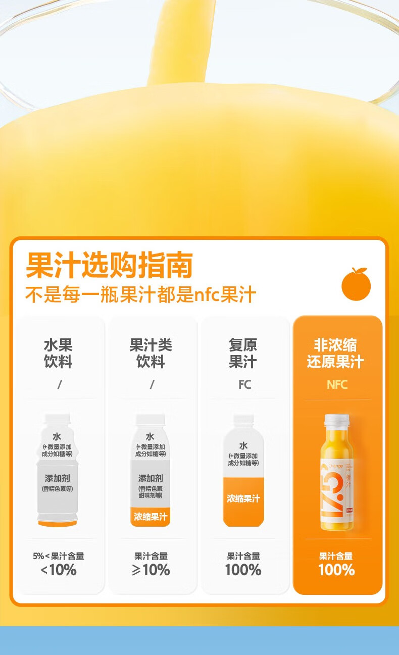 农夫山泉 纯果汁17.5°NFC冷藏果汁鲜榨果汁低温生鲜果汁 饮料 300ml*10瓶 混色(单位:箱)