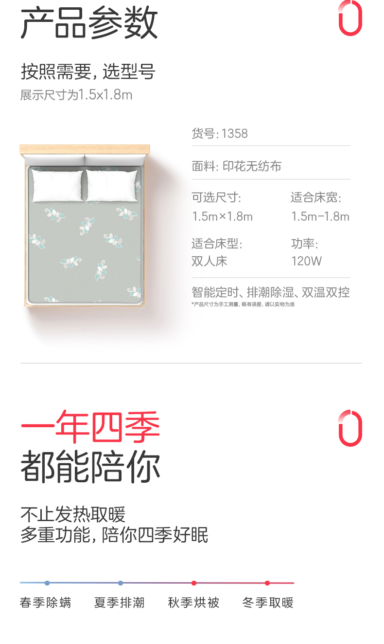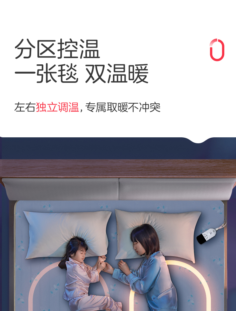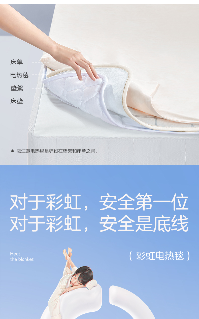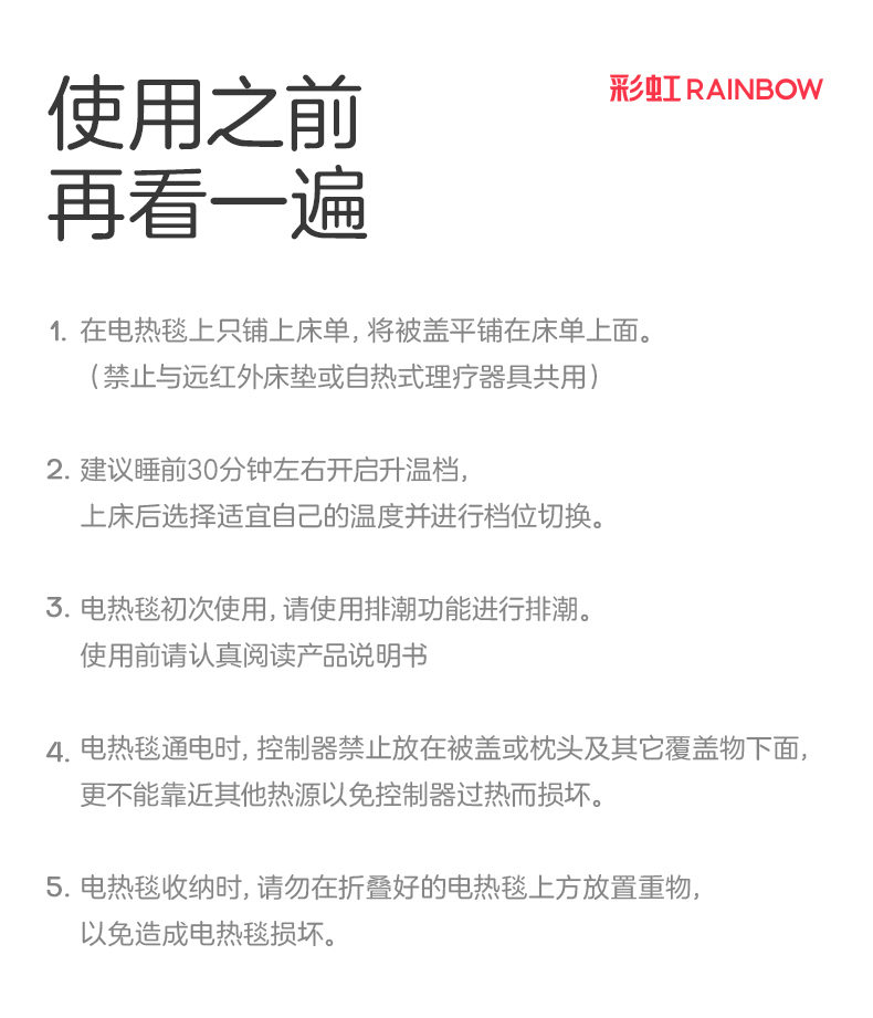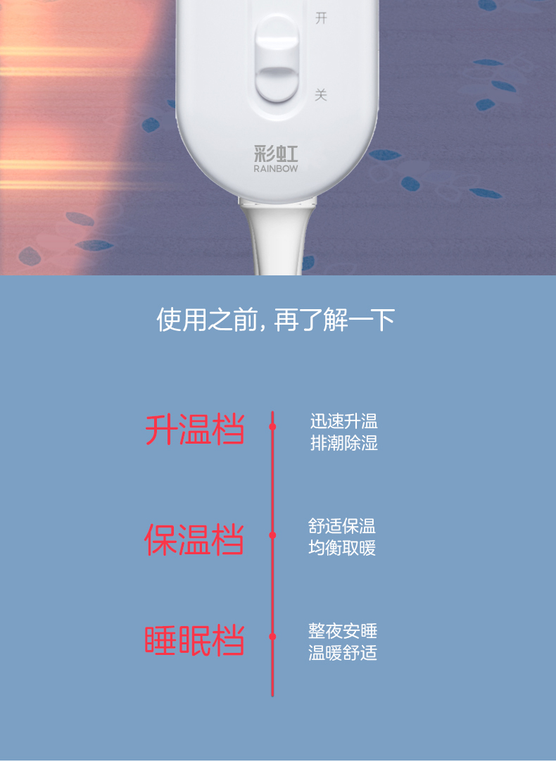 彩虹(rainbow) 全线路安全保护电热毯(双控双温) 1358 TT180×150-10X 1.5m*1.8m 红色(单位:床)