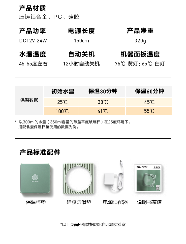 北鼎(Buydeem) 保温杯垫 OA2001A0 220V 浅杉绿(单位:个)