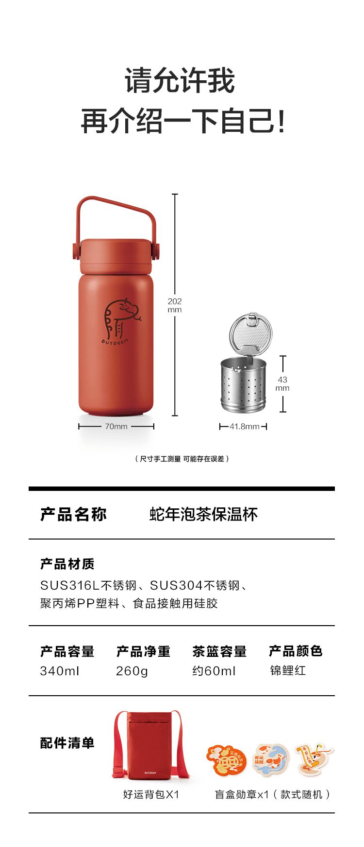 北鼎(Buydeem) 泡茶保温杯 TS600/A3 640ml 燕麦白(单位:个)