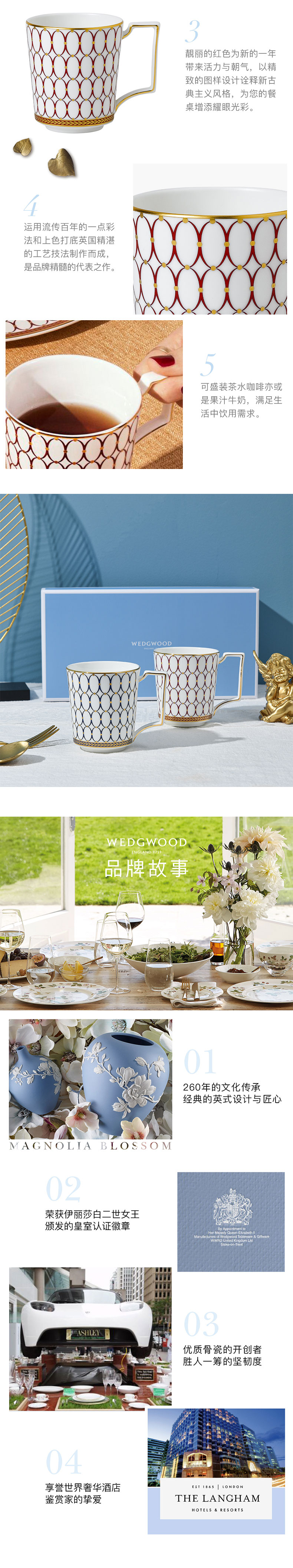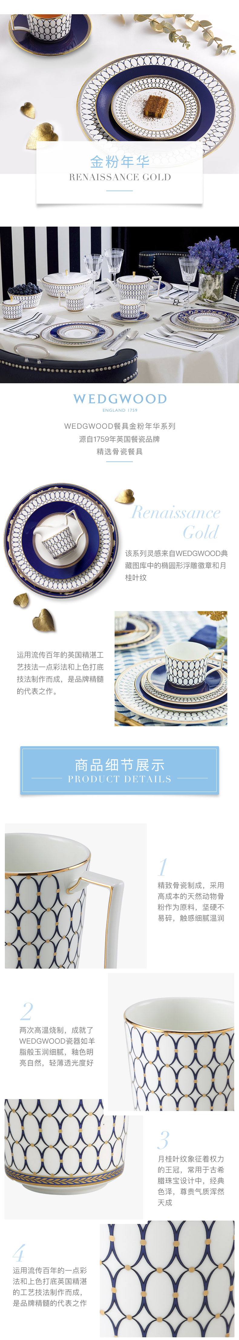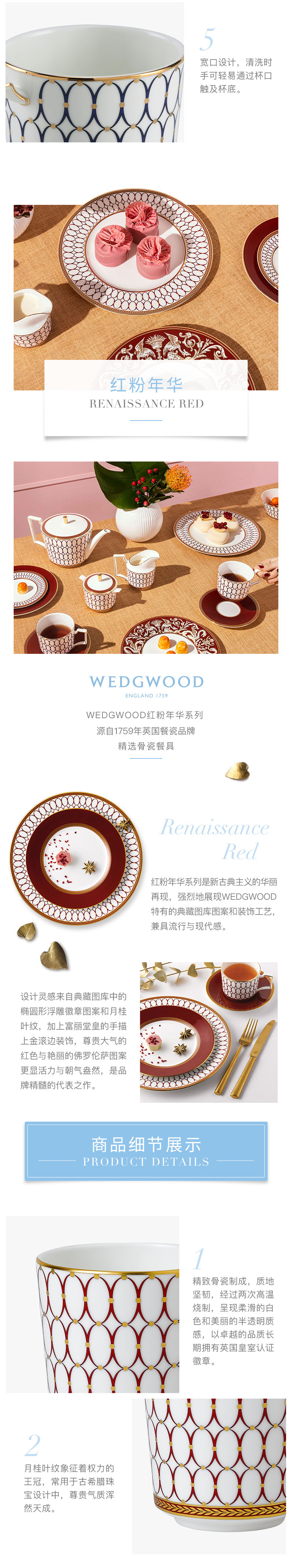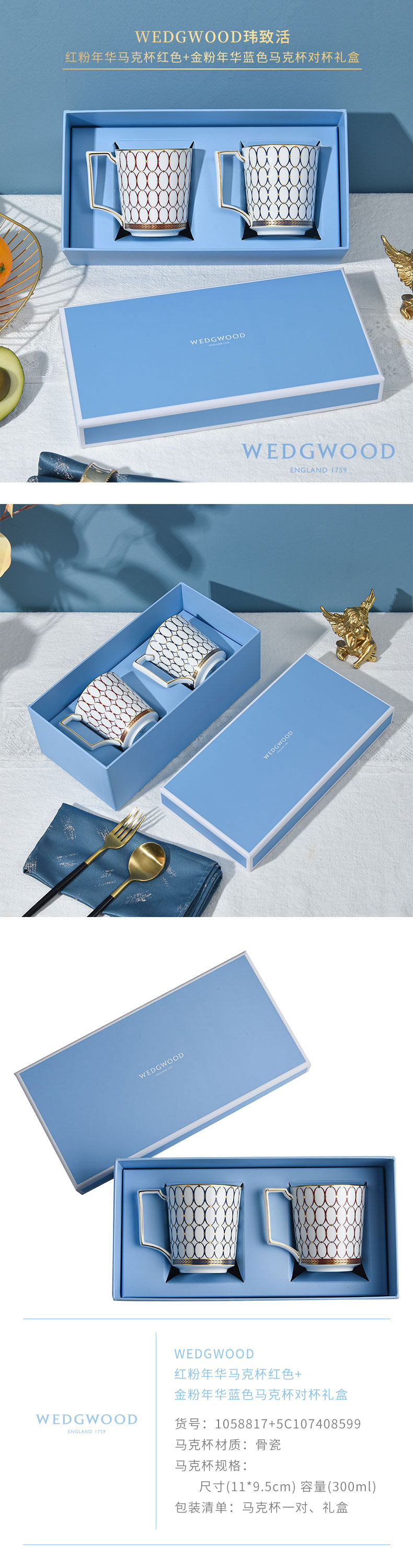 WEDGWOOD 威基伍德金粉年华马克杯对杯 1054482+1058817 300ml*2 鎏金红+午夜蓝(单位:套)