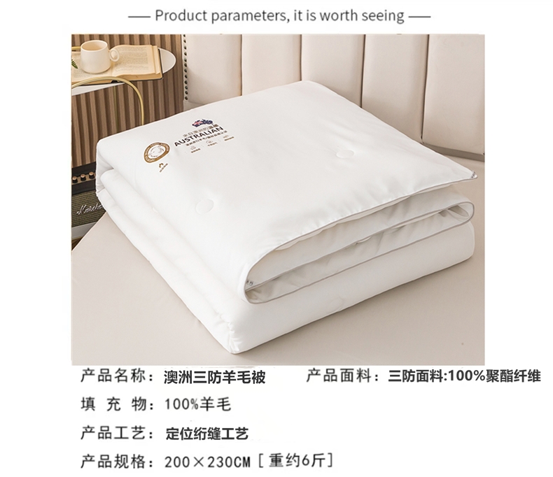 Hllton Meiju 五星级酒店同款澳洲羊毛被 HL-1502 6斤 本白色(单位:条)