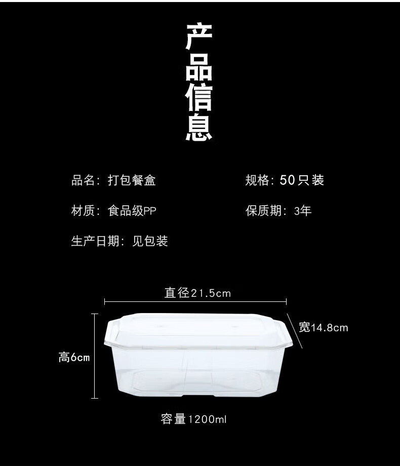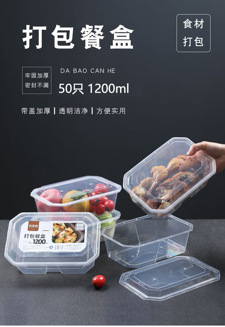 芳草地 一次性饭盒 3G6008 1200ml*50套/箱 混色(单位:组)