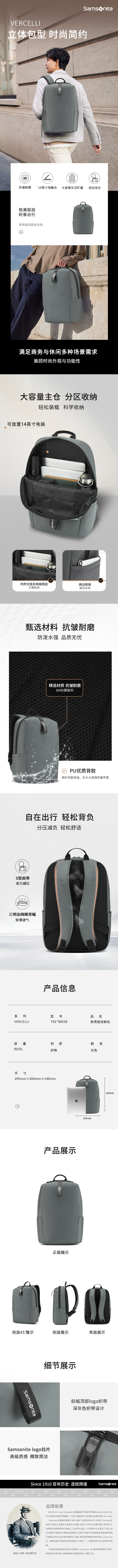 新秀丽(Samsonite) VERCELLI双肩包 TR1*08038 19L 灰色(单位:个)