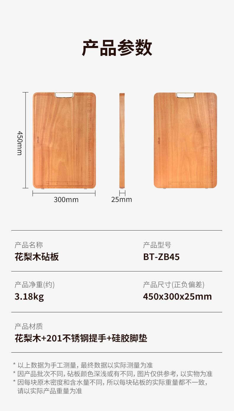BTSM 进口花梨木砧板 BT-ZB45 产品净重:3.18kg 原木色(单位:块)