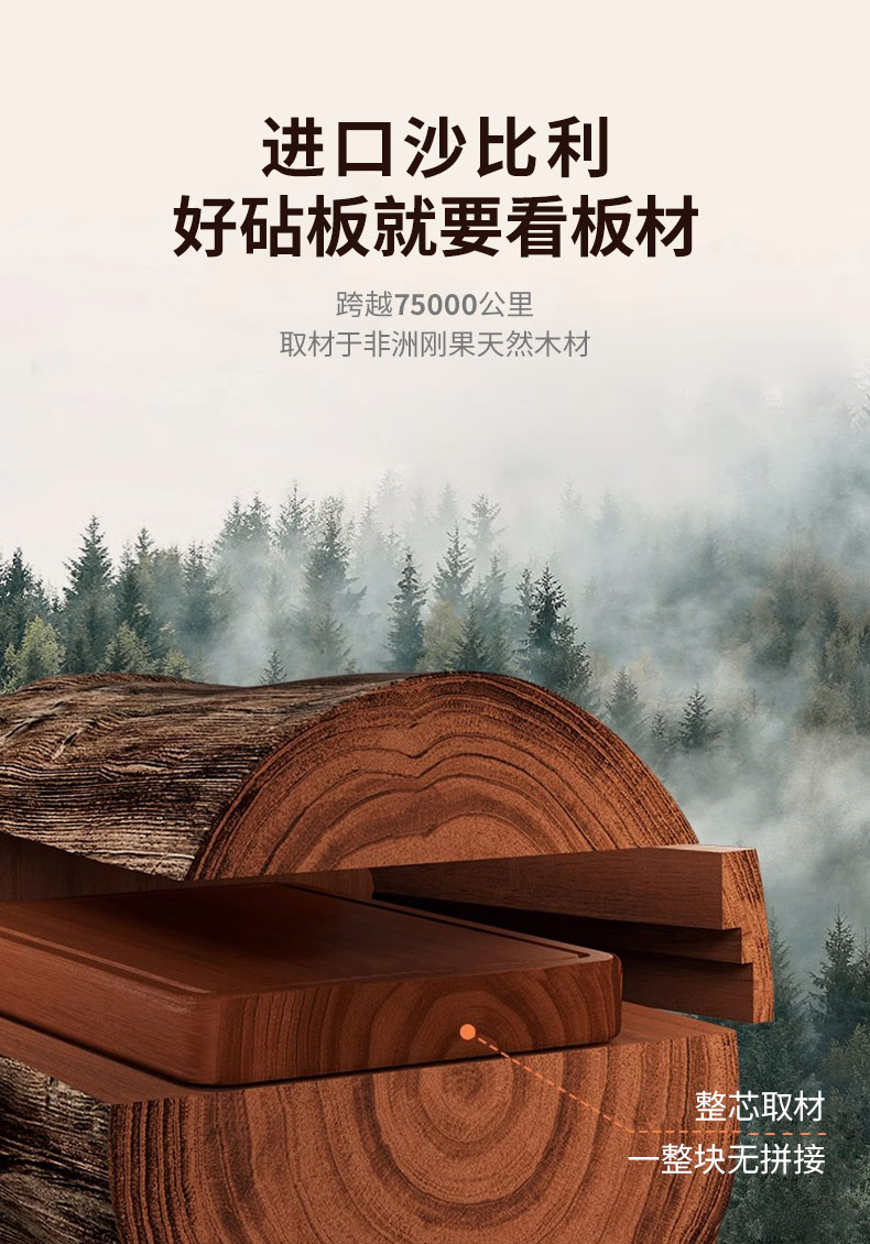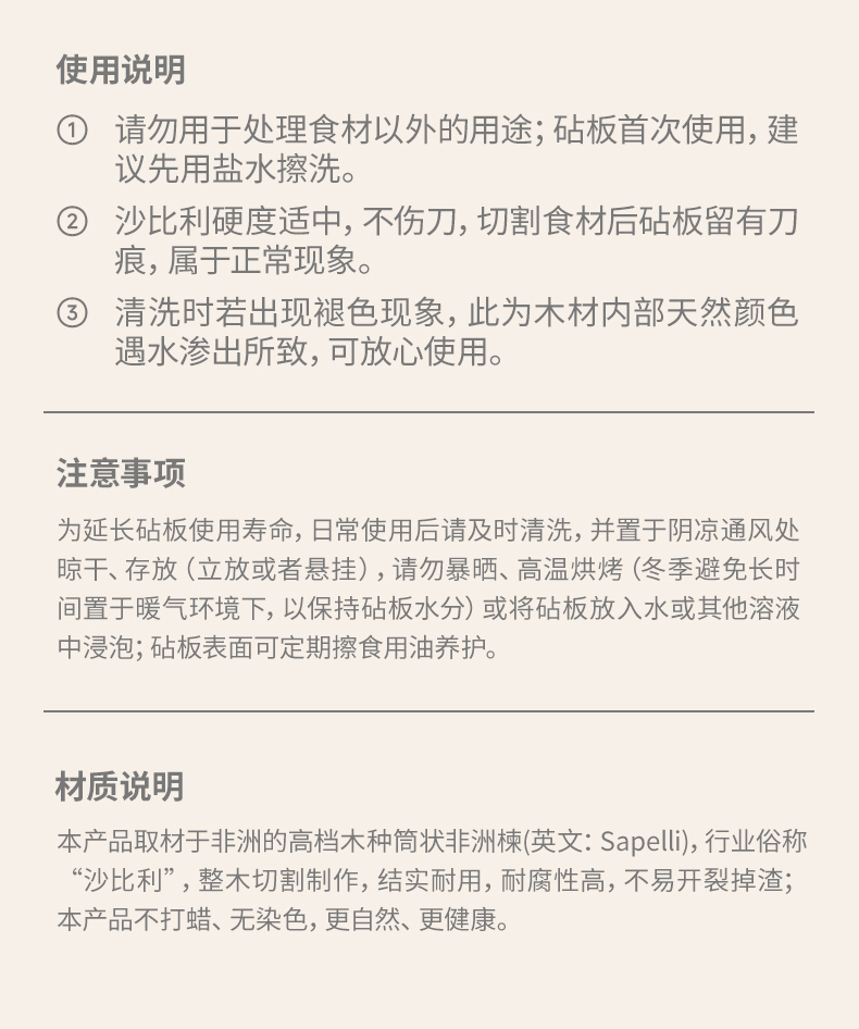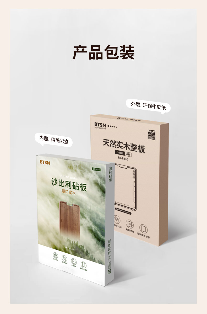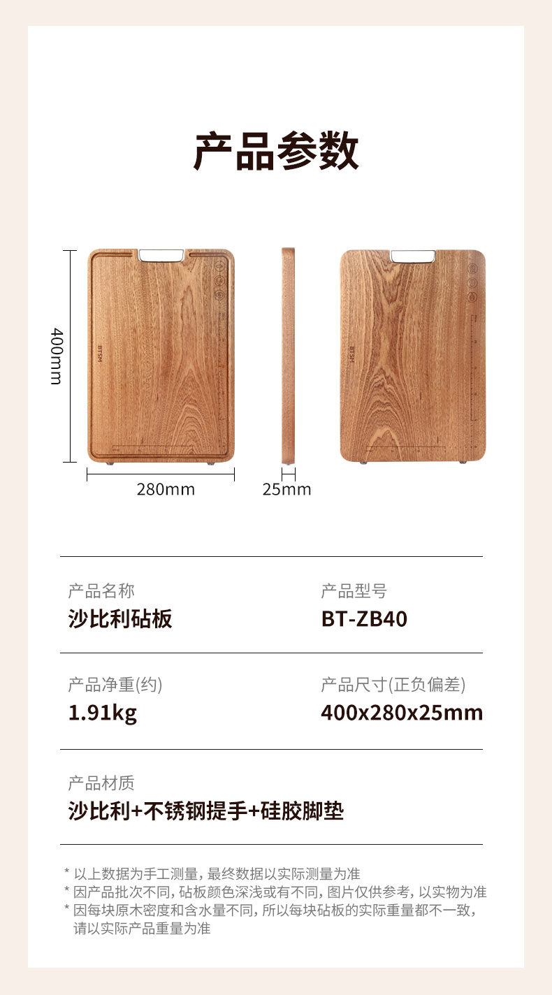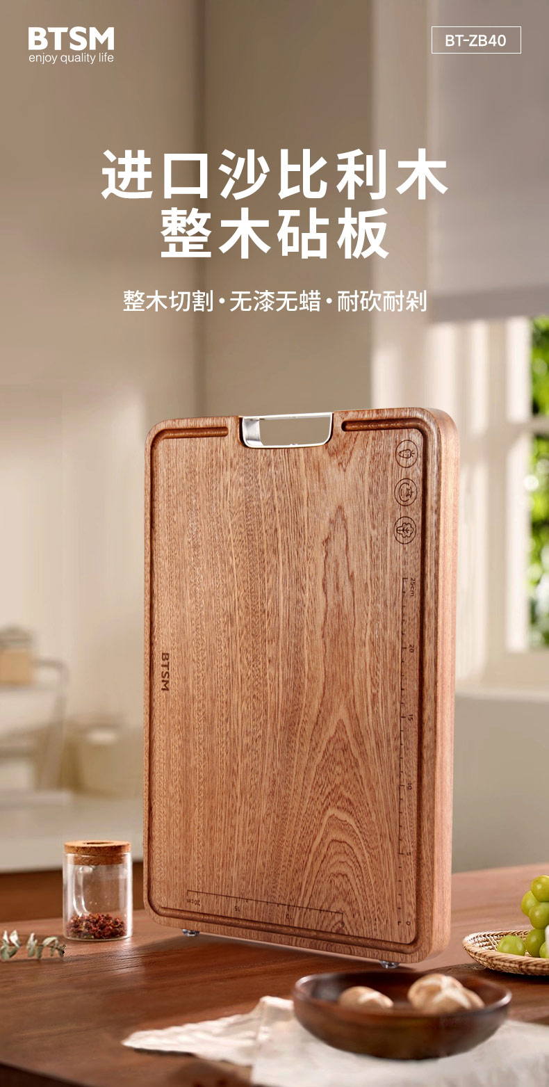 BTSM 进口沙比利砧板 BT-ZB40 产品尺寸:40x28x2.5cm 拿铁色(单位:块)