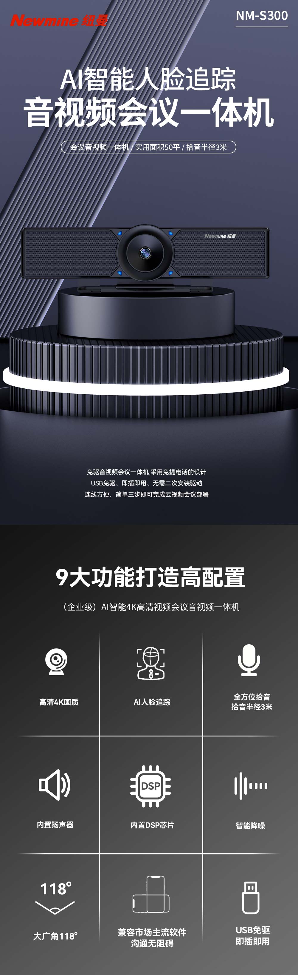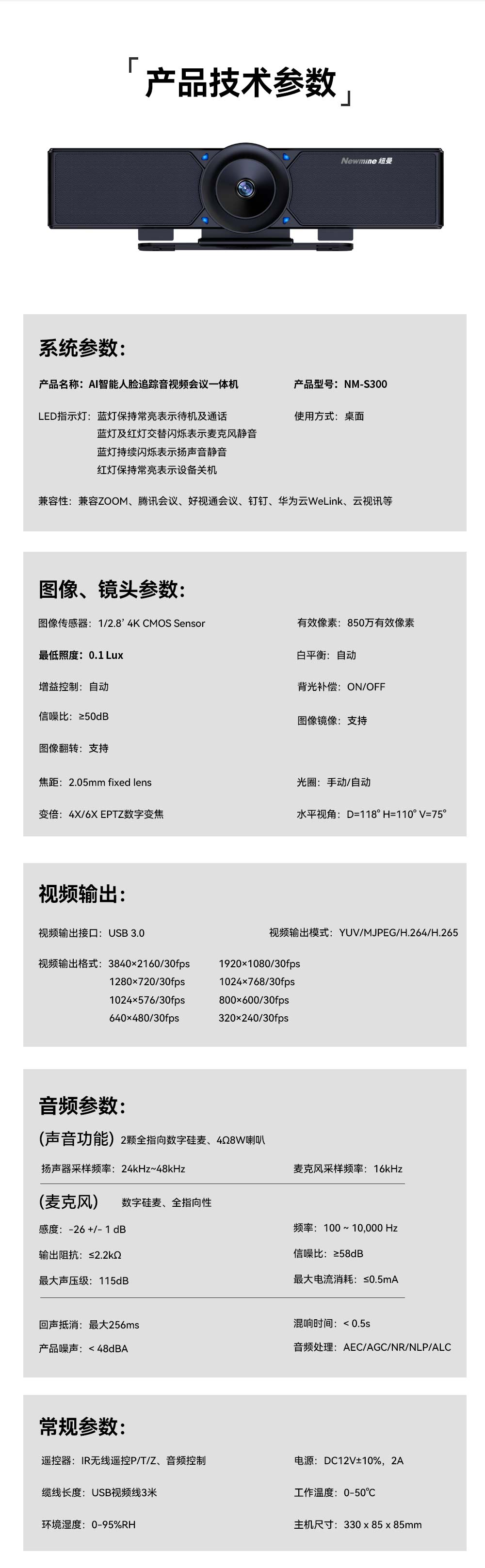 纽曼(Newmine) 摄像头 NM-S300 4倍/6倍数字变焦 黑色(单位:台)