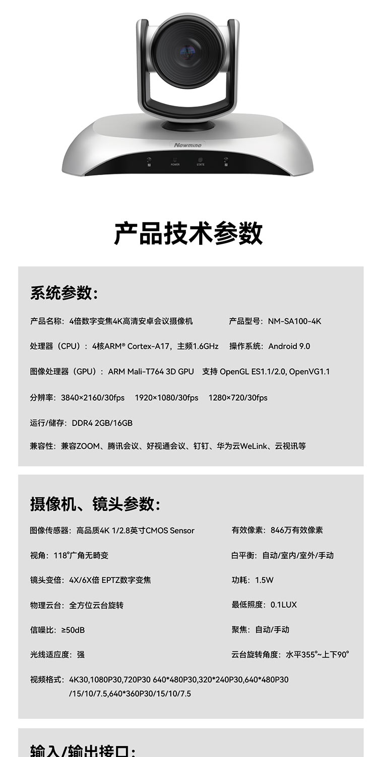 纽曼(Newmine) 摄像头 NM-SA100-4K 846万像素 银色(单位:台)