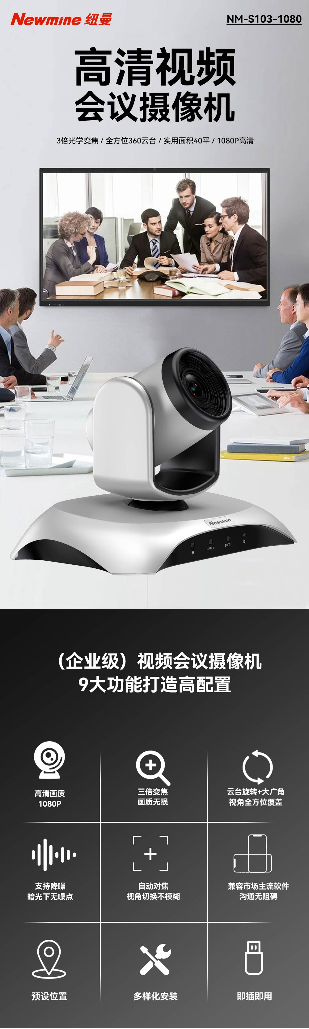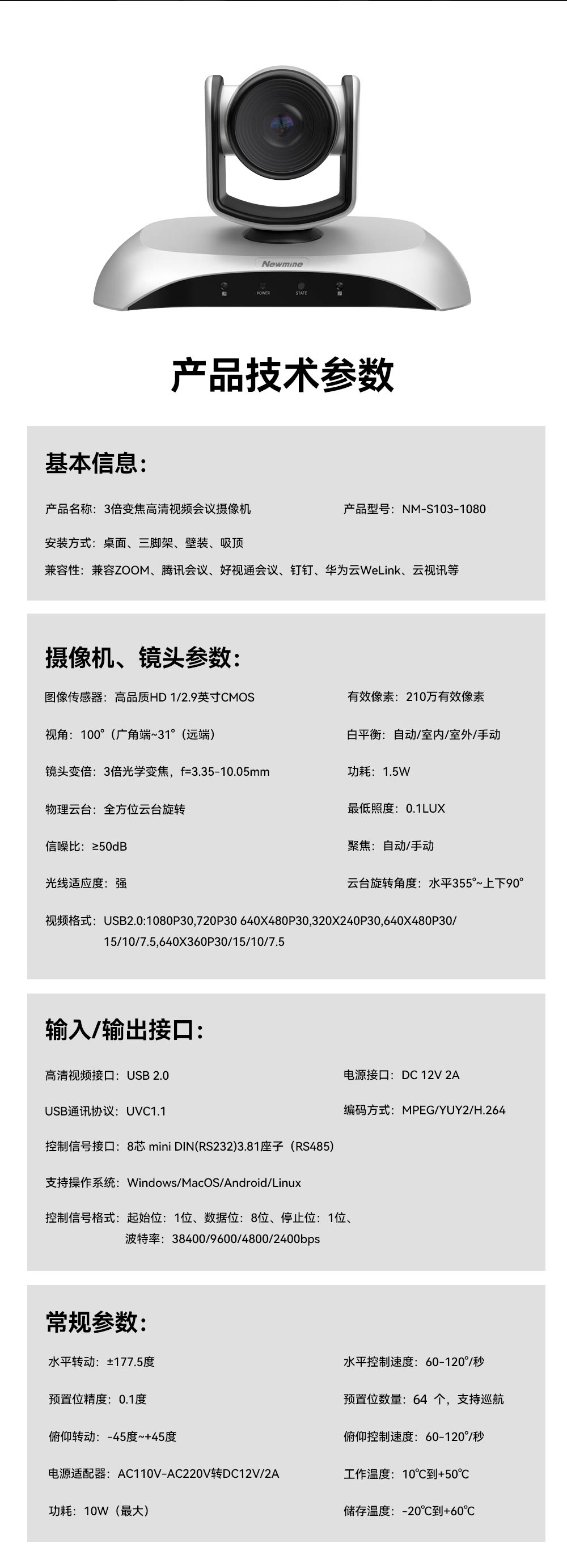 纽曼(Newmine) 摄像头 NM-S103-1080 210万像素 银色(单位:台)