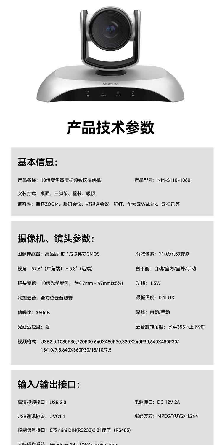 纽曼(Newmine) 摄像头 NM-S110-1080 210万像素 银色(单位:台)