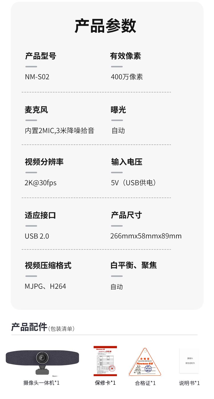 纽曼(Newmine) 摄像头 NM-S02 400万像素 黑色(单位:台)