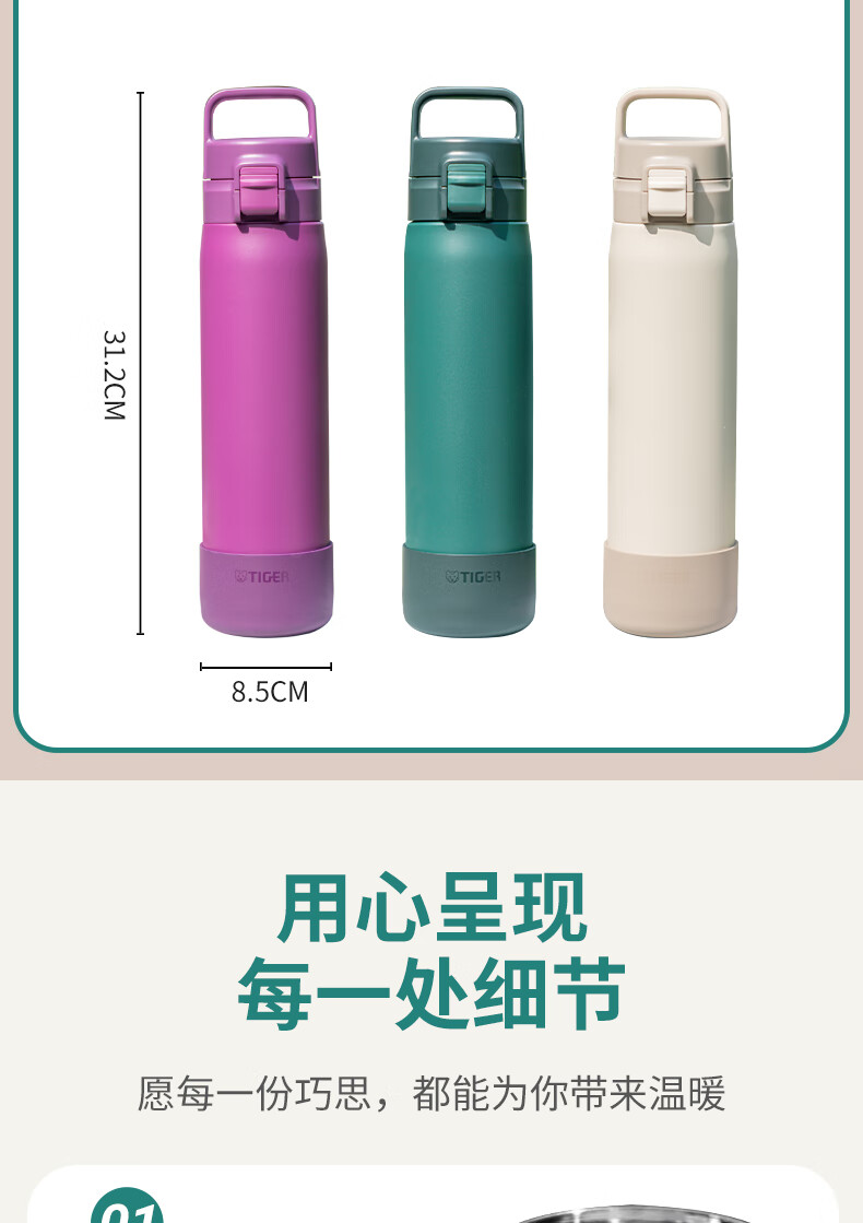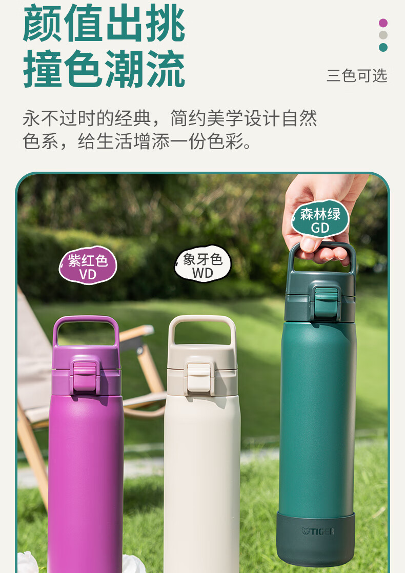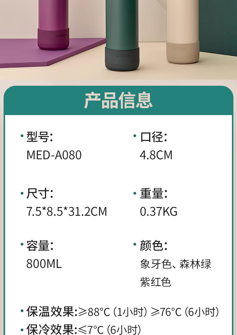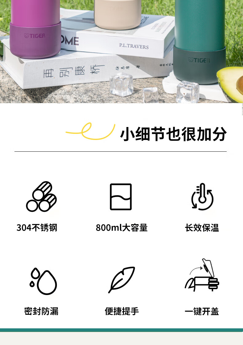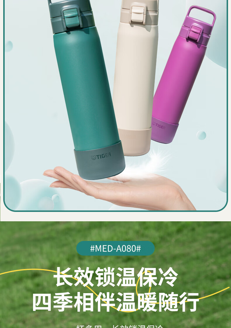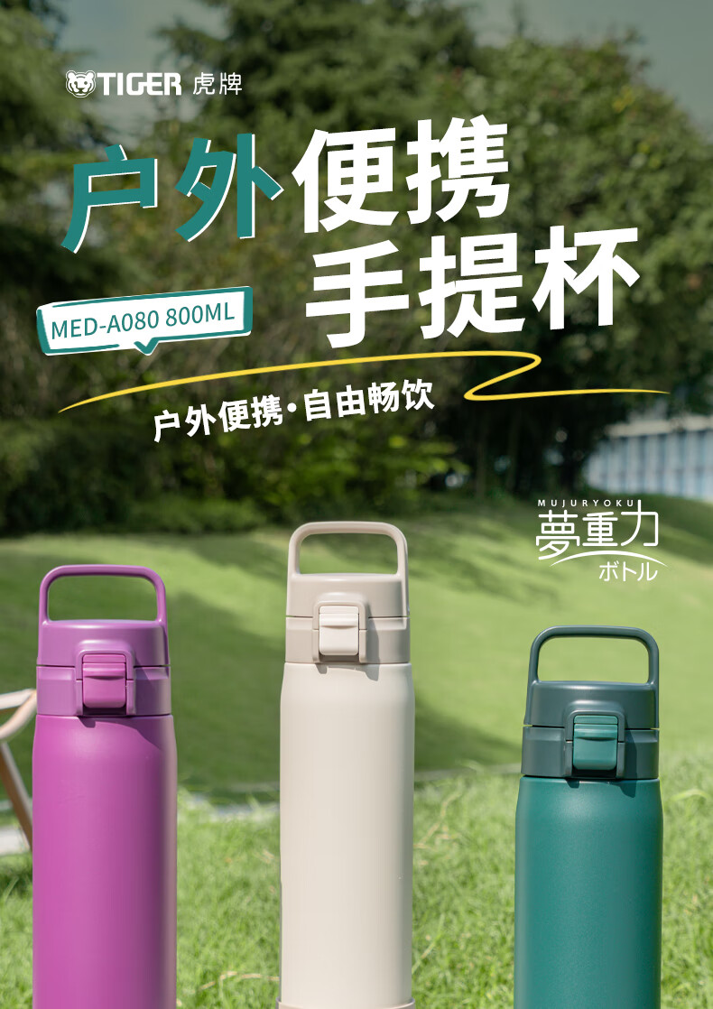 虎牌(TIGER) 户外便携运动手提保温杯 MED-A080 800ml 紫色(单位:个)