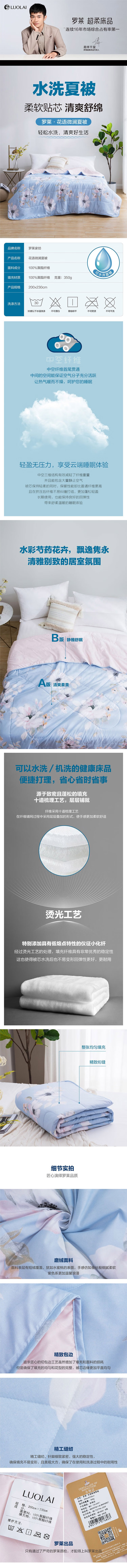 罗莱家纺(LUOLAI) 夏被 花语微澜 200*230cm 天蓝色(单位:条)