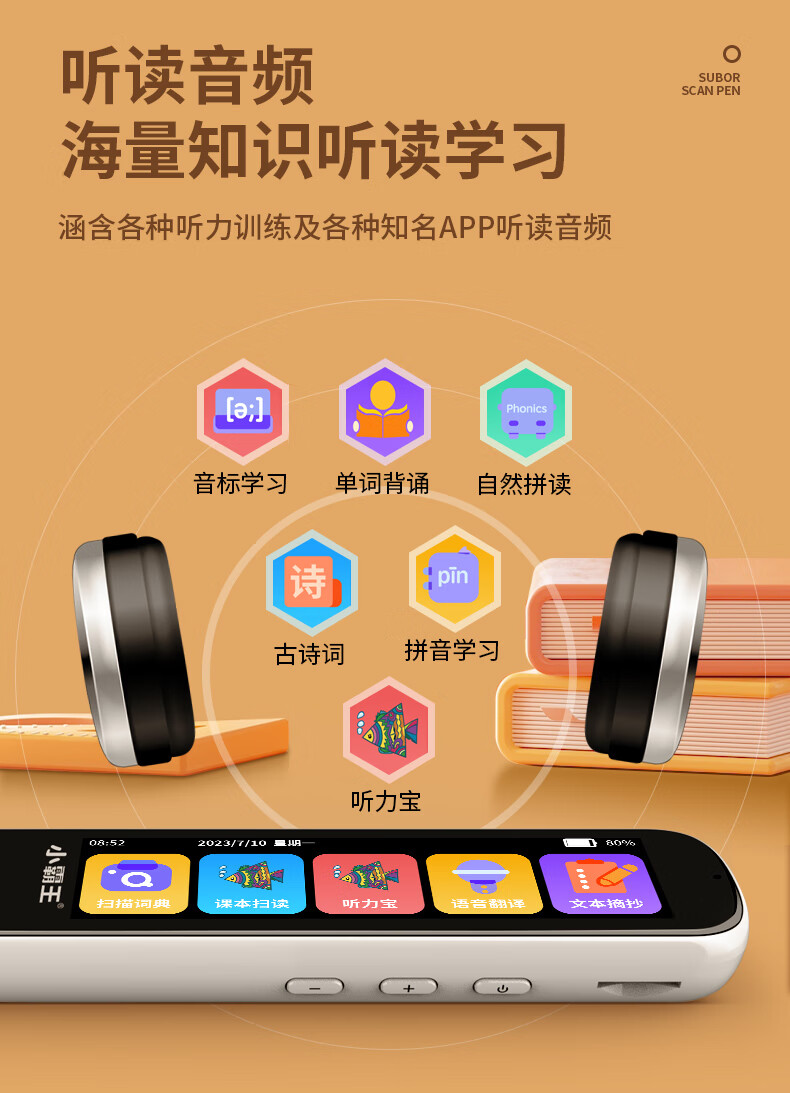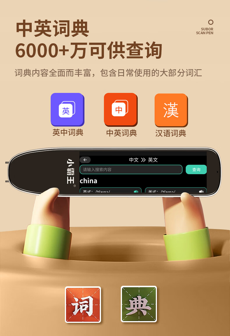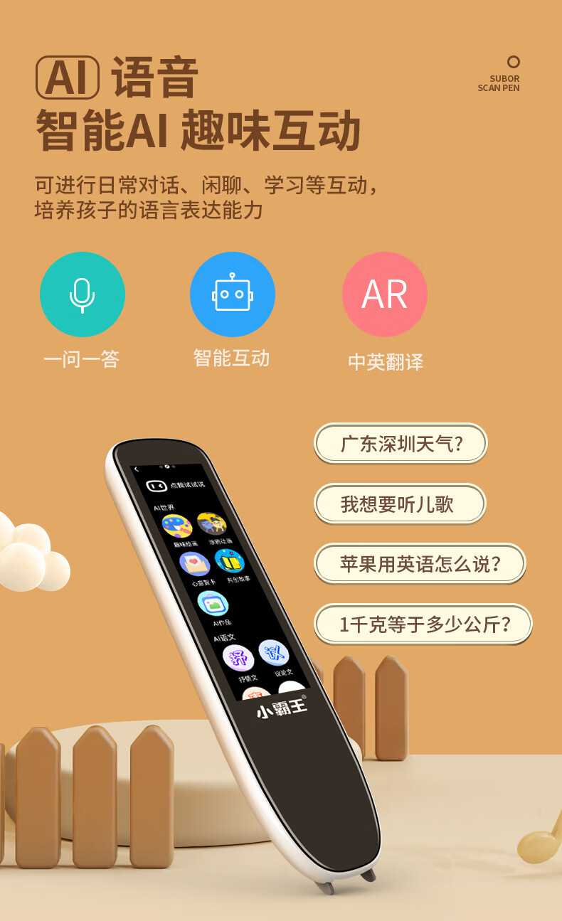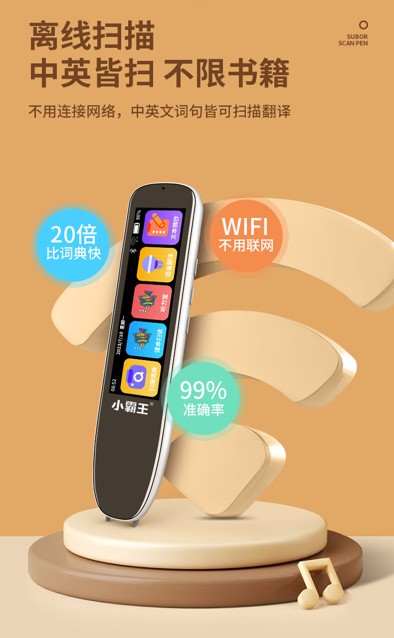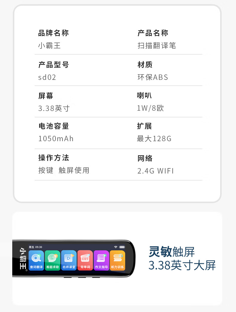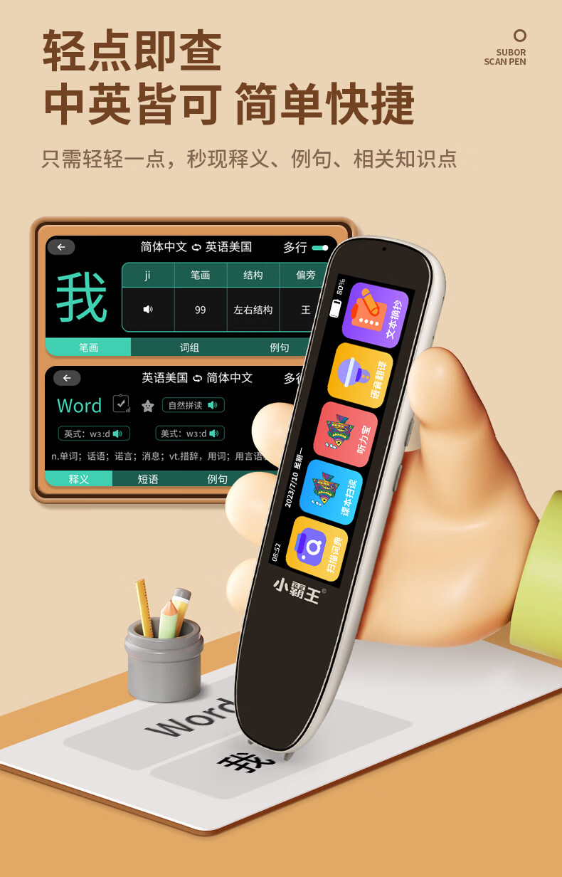 小霸王 全科词典笔 SD02 英语通用小学初中课本同步学习笔扫描扫读笔点读机 黑色 8GB 黑色(单位:台)