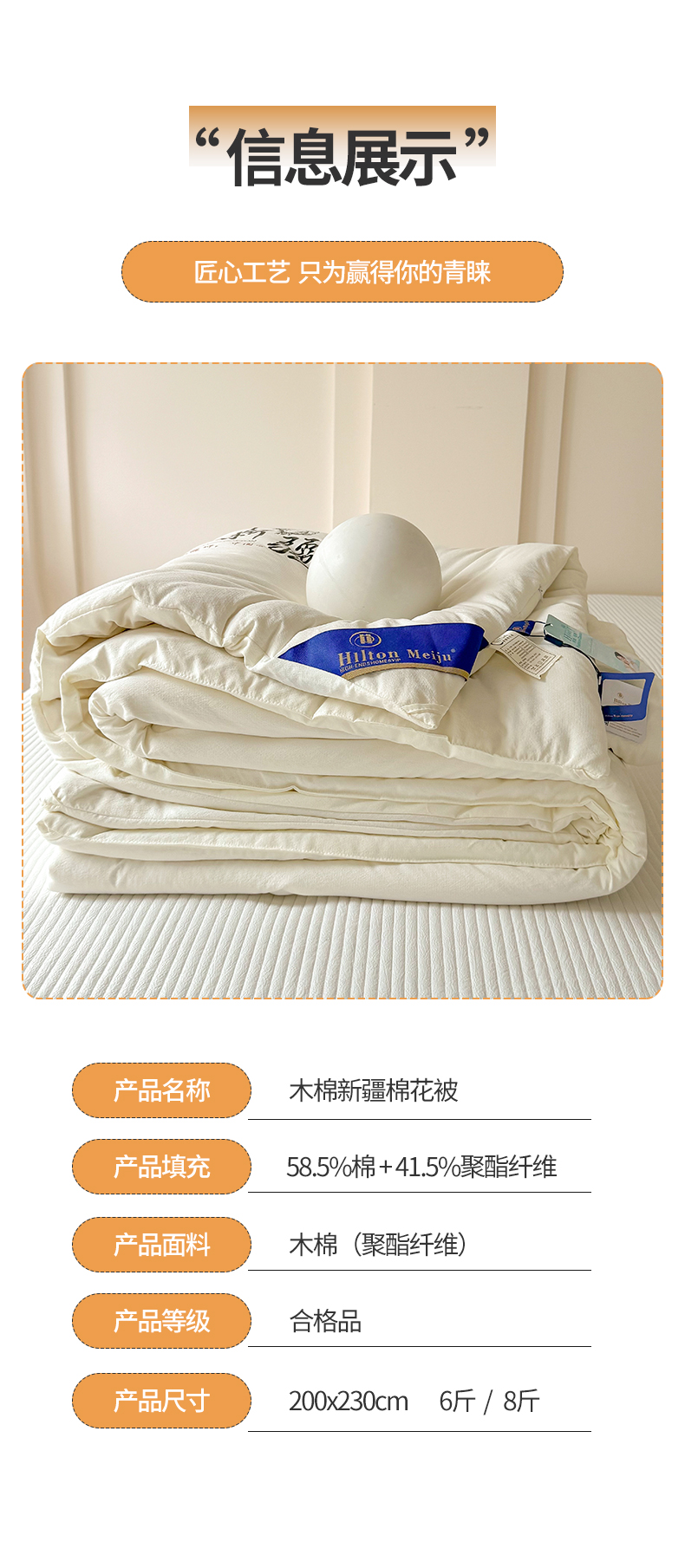 Hllton Meiju (希尔顿美居)新款新疆棉花被暖冬被 HL-1506 200*230cm 白色(单位:条)