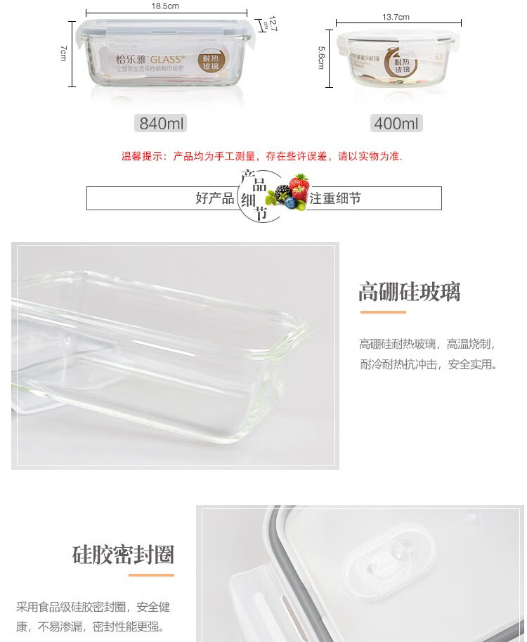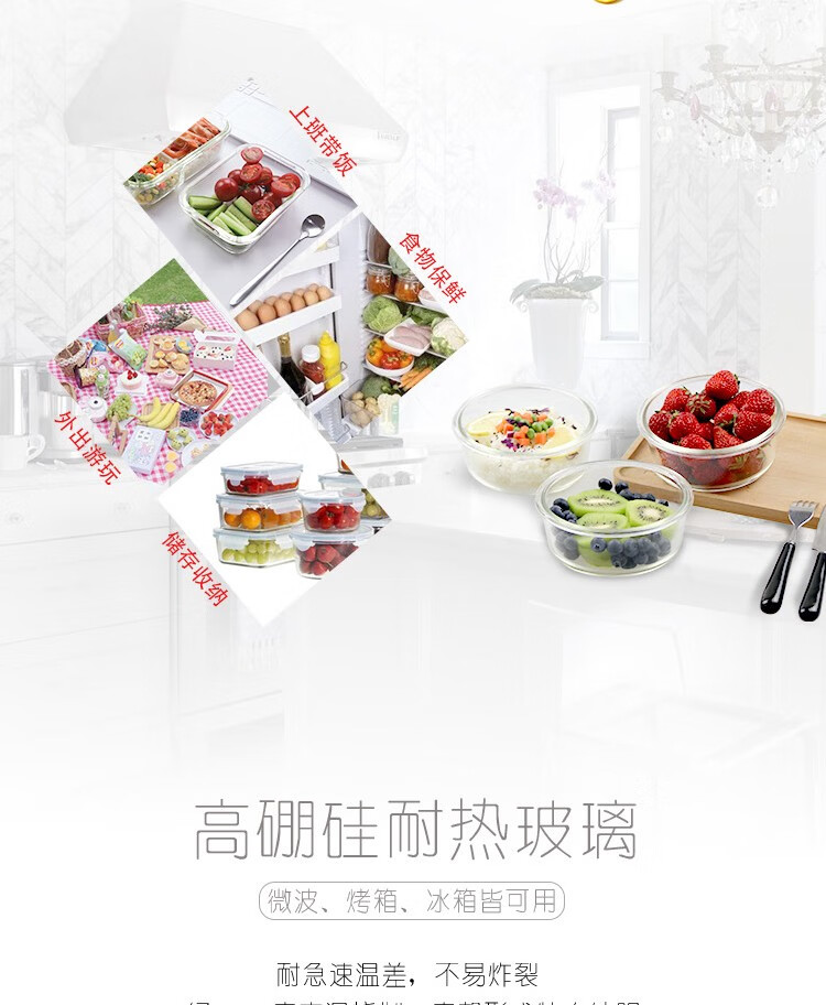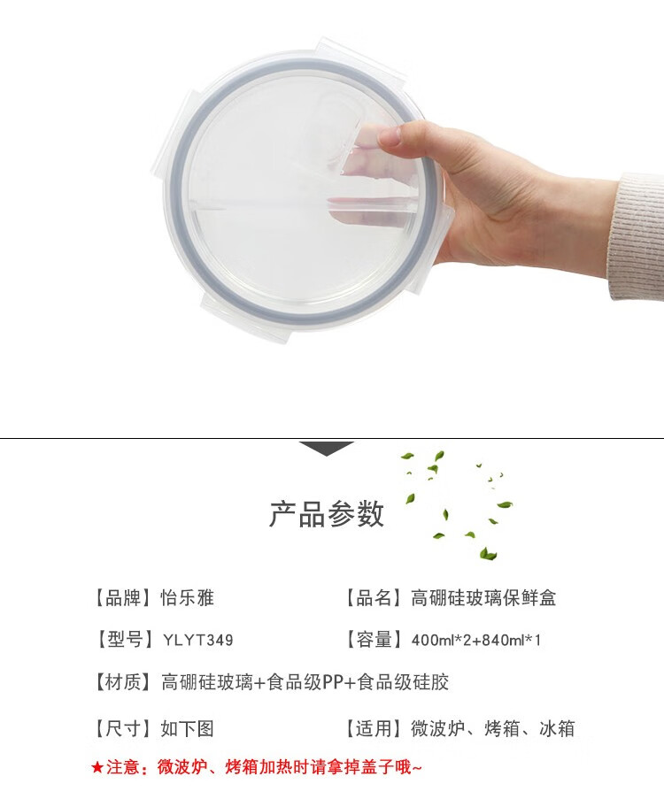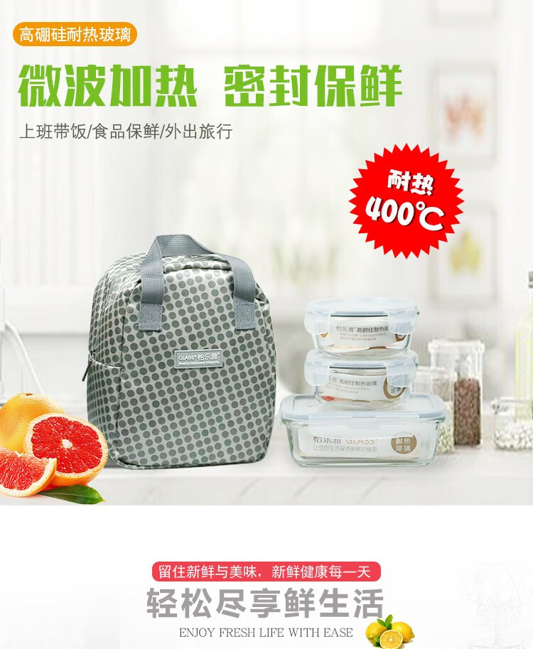 怡乐雅 高硼硅玻璃保鲜盒 (含有保温餐包) YLYT349 三件套 透明色(单位:套)