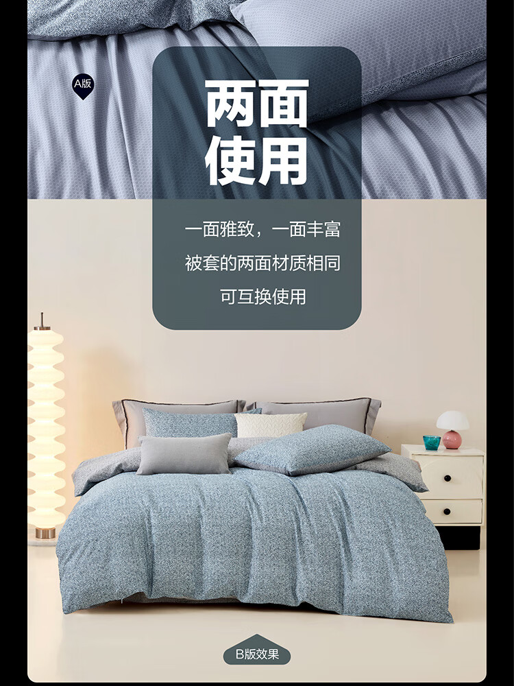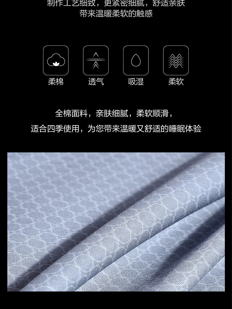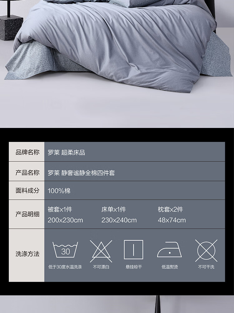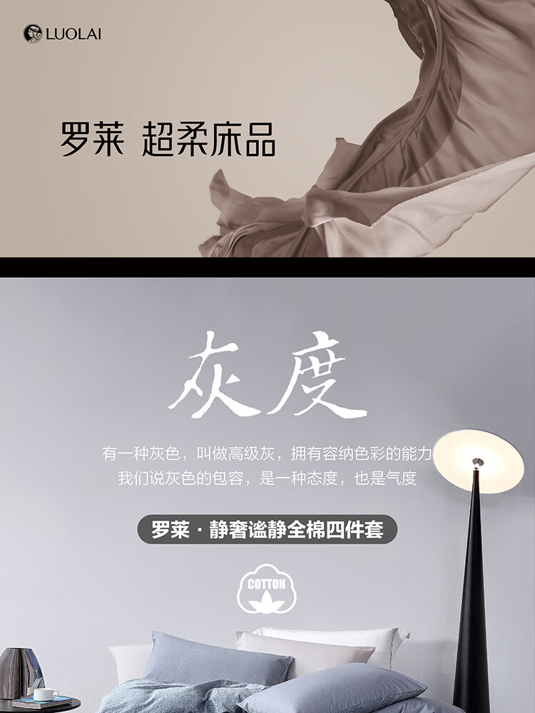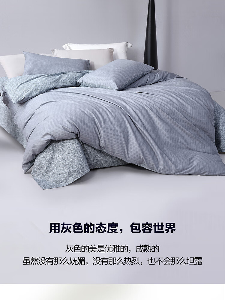 罗莱家纺(LUOLAI) 全棉四件套 静奢谧静 被套200*230cm 灰色(单位:套)