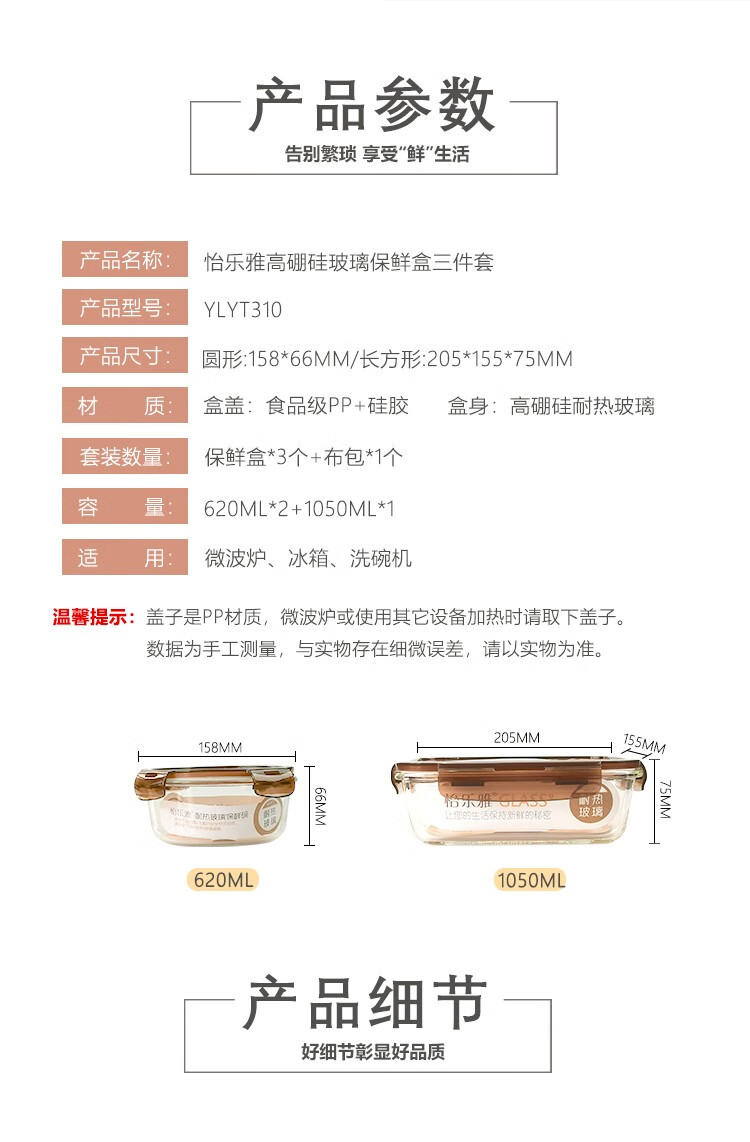 怡乐雅 高硼硅玻璃保鲜盒 YLYT310 三件套 褐色(单位:套)