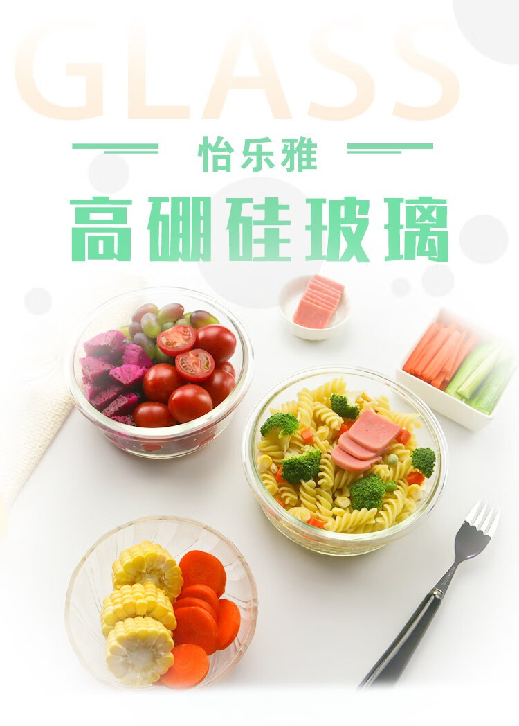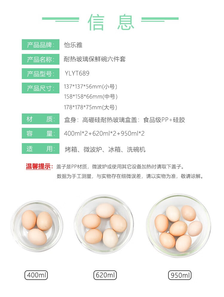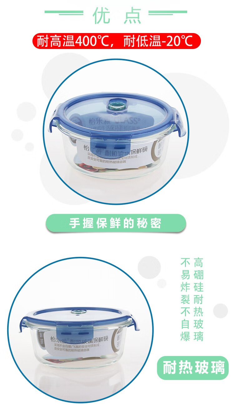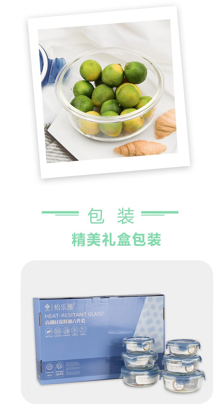 怡乐雅 高硼硅保鲜碗 六件套 YLYT689 400ml *2+620ml*2+950ml*2 蓝色(单位:套)