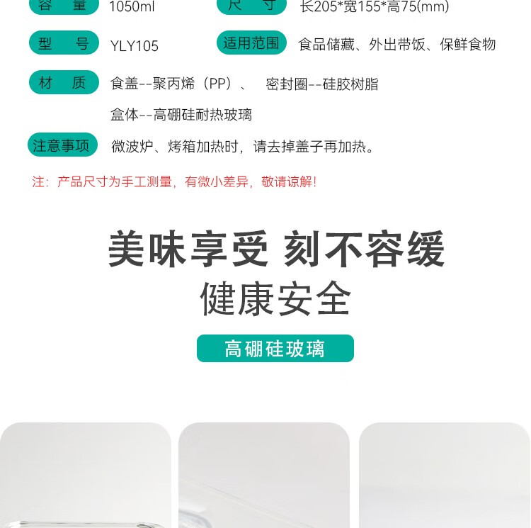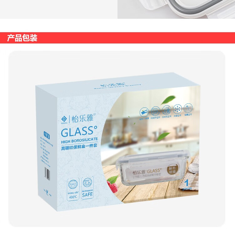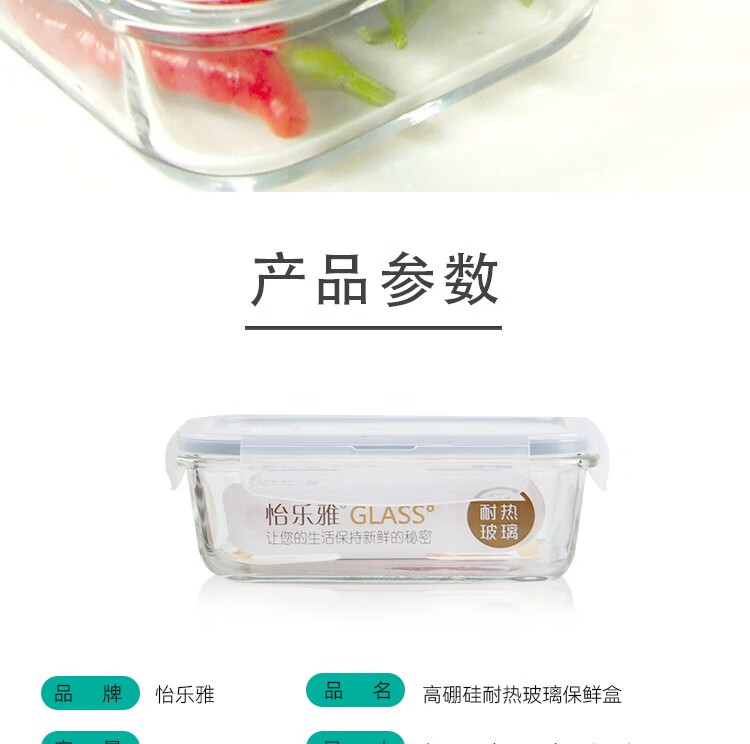 怡乐雅 高硼硅耐热保鲜盒 YLY105 1050ml 透明色(单位:个)