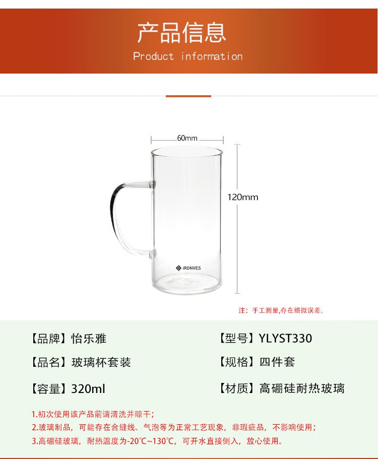 怡乐雅 高硼硅玻璃杯套装 YLYST330 四件套 透明色(单位:套)