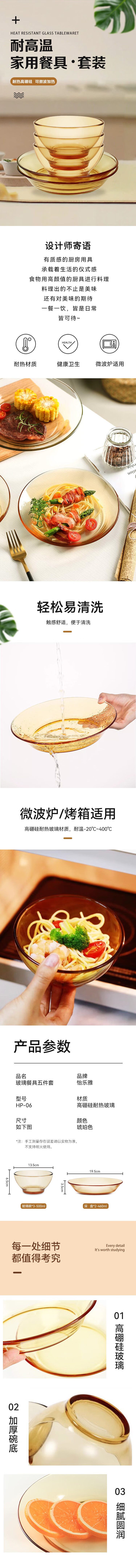 怡乐雅 高硼硅玻璃餐具五件套 HP-06 5件套 琥珀色(单位:套)