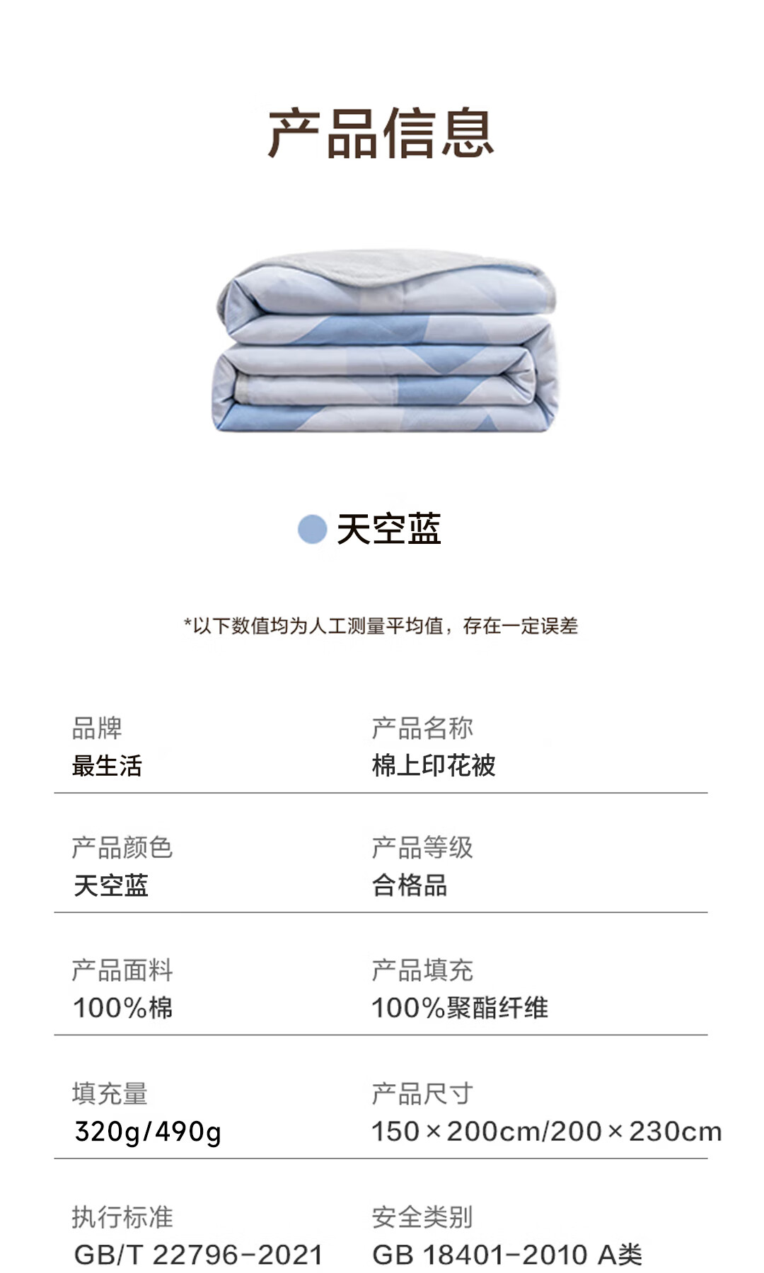 最生活 棉上印花夏被 Z-8802 150*200cm 天空蓝(单位:条)