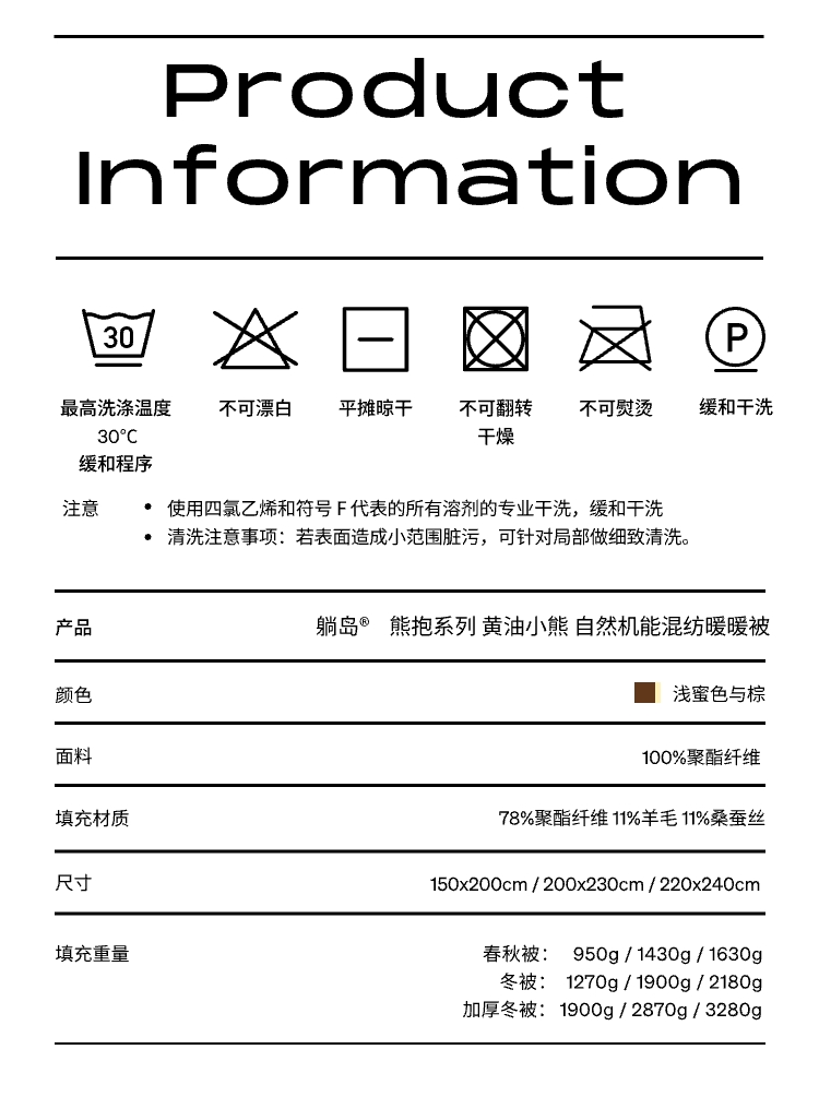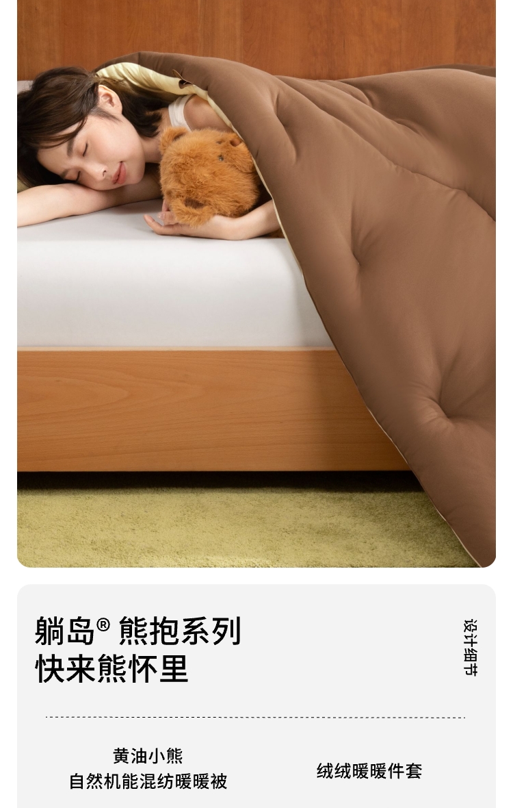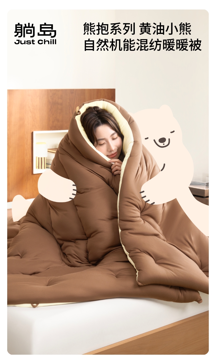 躺岛 熊抱系列 黄油小熊 自然机能混纺暖暖被 冬季款3.0(适宜室温 10-15℃) 150x200cm 浅蜜色与棕色(单位:张)