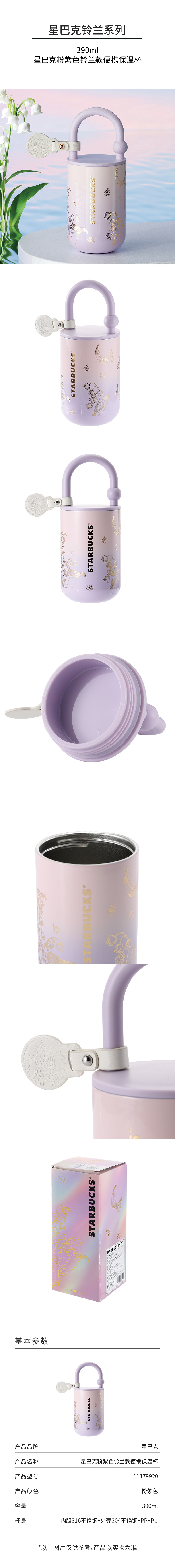 星巴克(Starbucks) 粉紫色铃兰款便携保温杯 11179920 390ml 紫粉(单位:个)