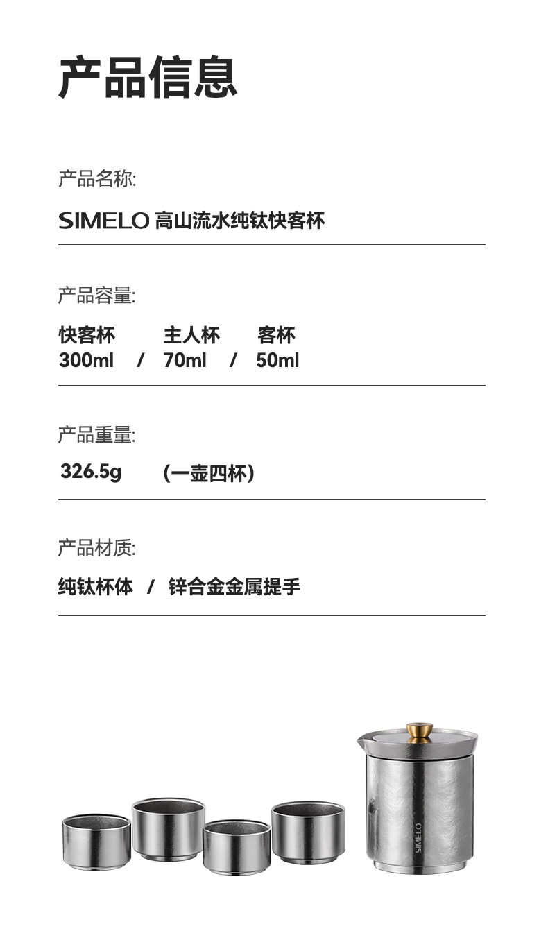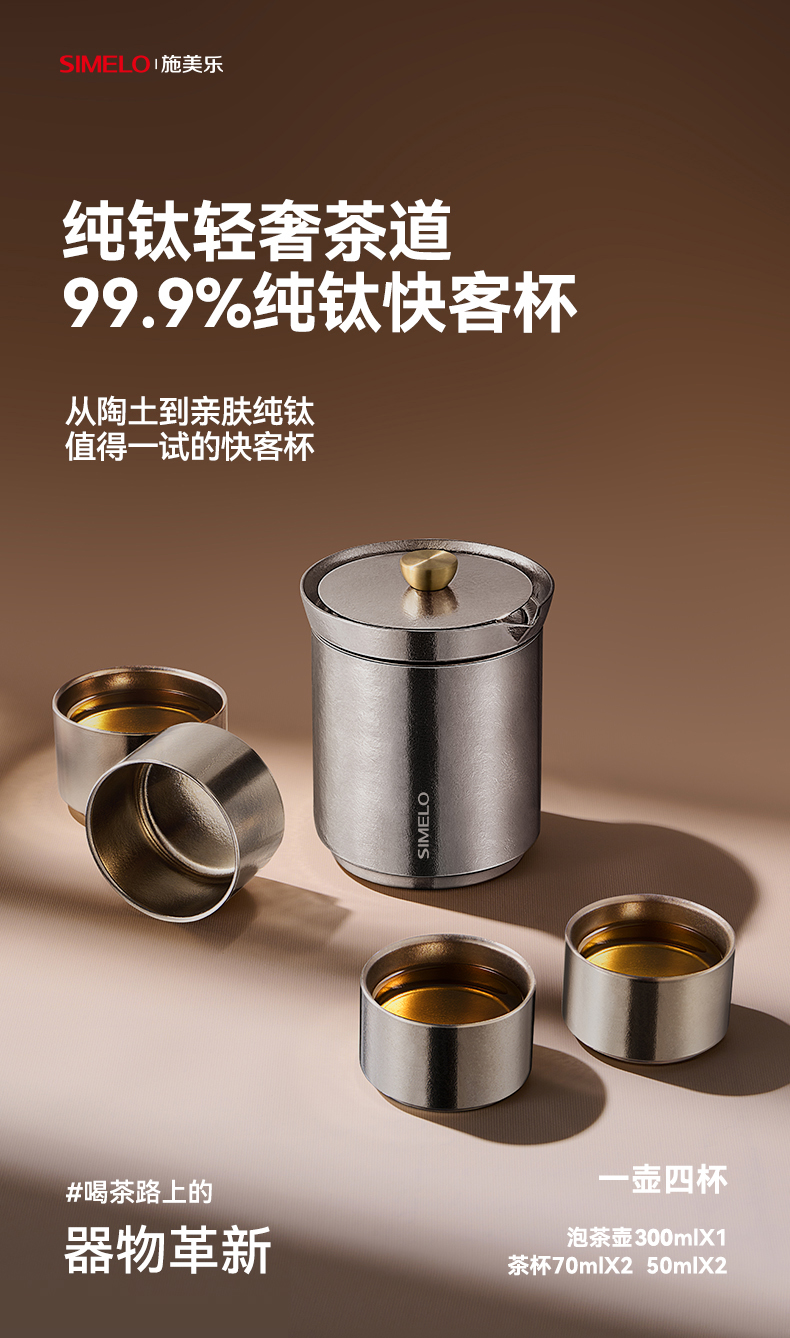 施美乐(SIMELO) 高山流水纯钛一壶四杯功夫茶具组 SM5068 300ML 璀璨银河(单位:套)