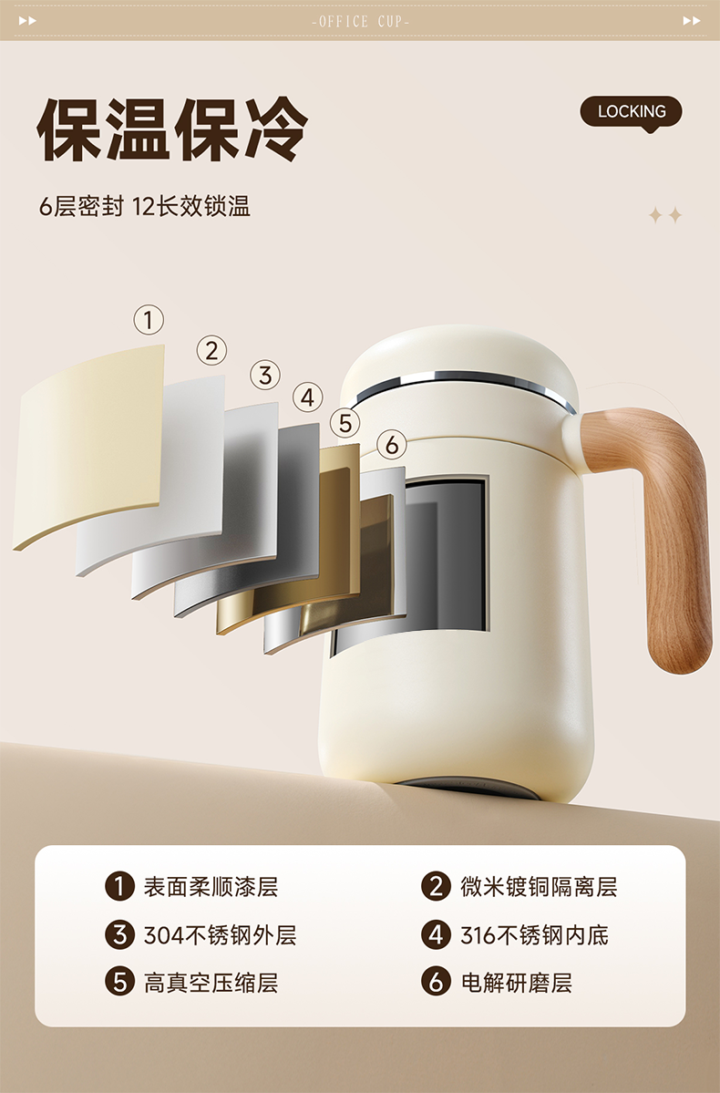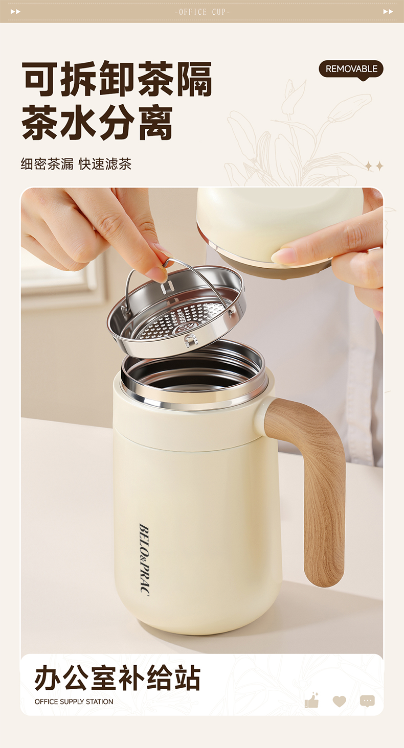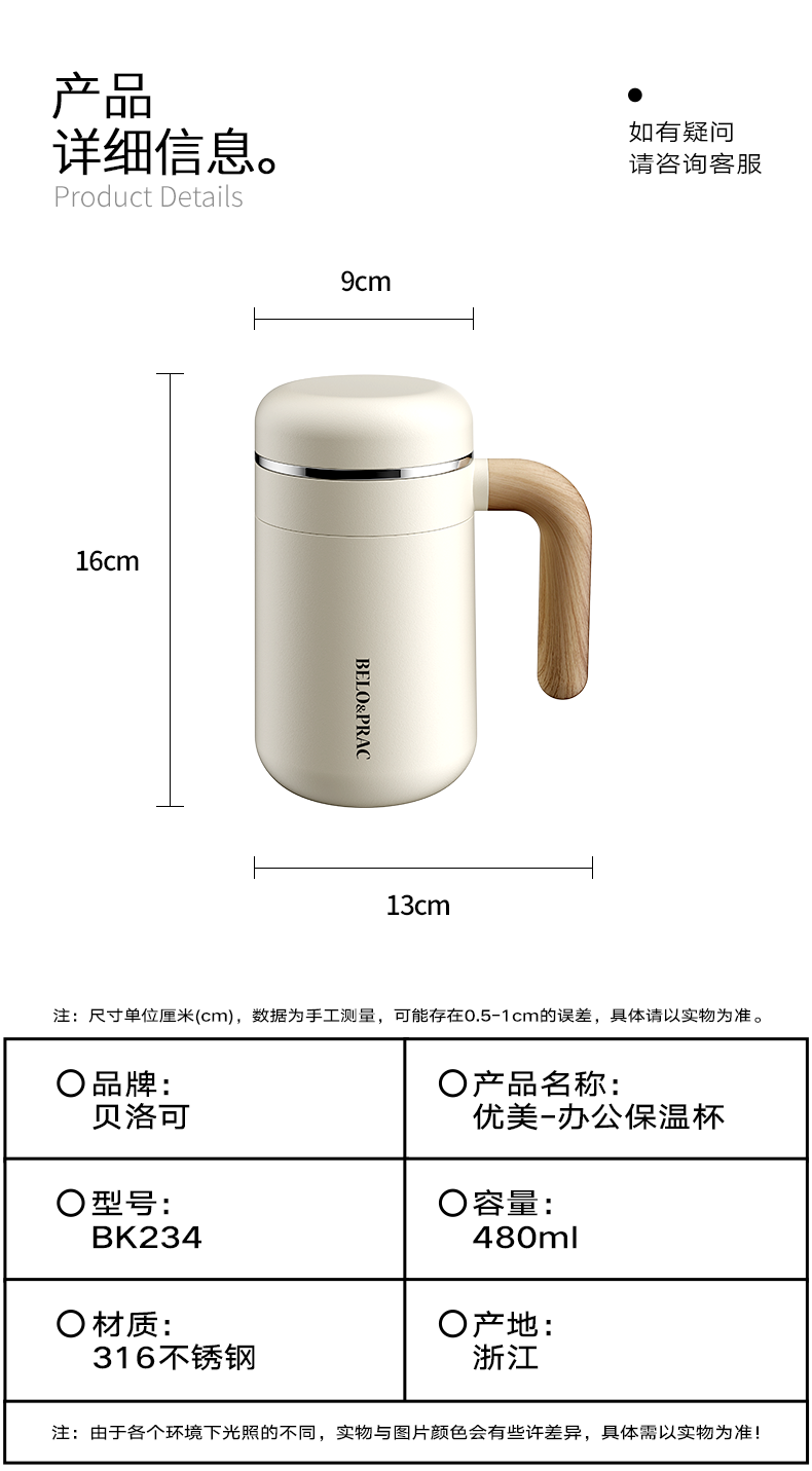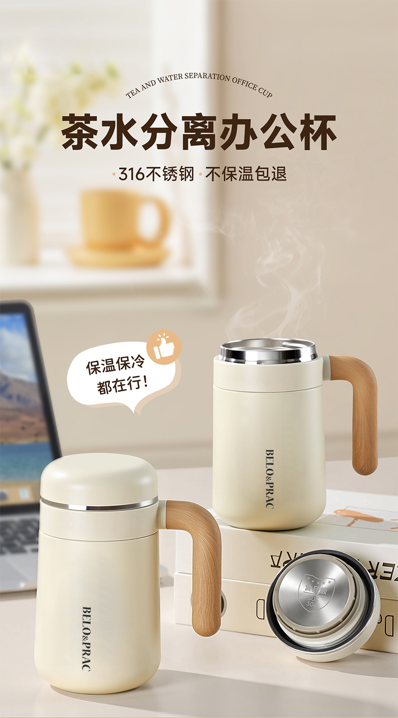 贝洛可(BELO&PRAC) 优美-办公保温杯 BK234 480ml 白色(单位:个)