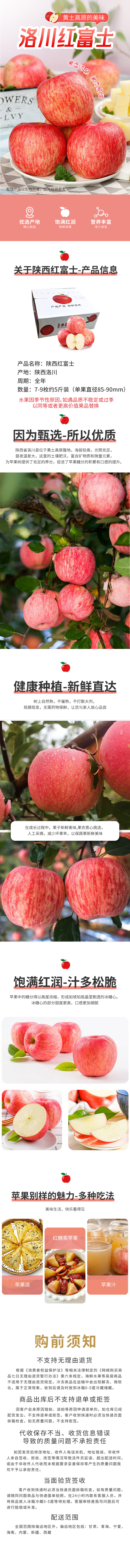 一统如宜 陕西洛川红富士苹果 单果直径85-90mm 7-9枚约5斤装 本白色(单位:盒)