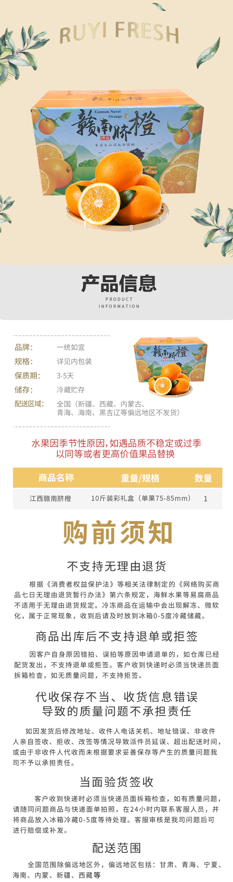 一统如宜 江西赣南脐橙 单果75-85mm 10斤装彩礼盒 灰橙色(单位:盒)