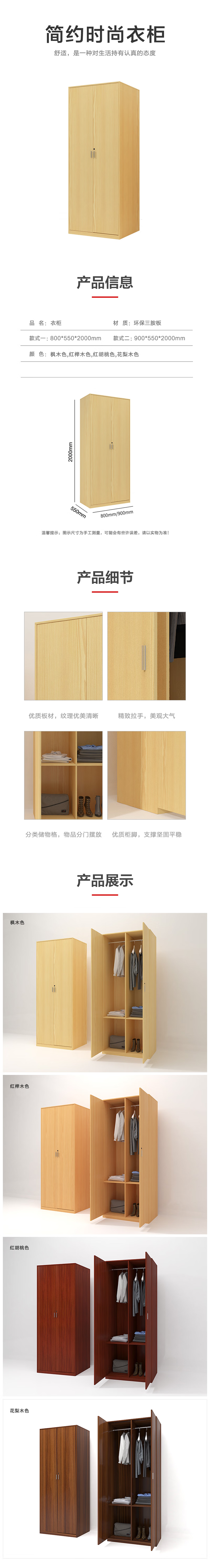 企诺 两门家用卧室衣柜 QY022 900*550*2000mm 红榉木色(单位:个)