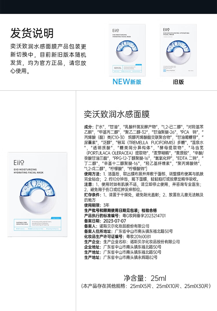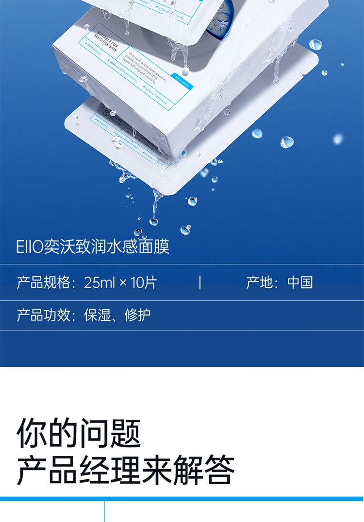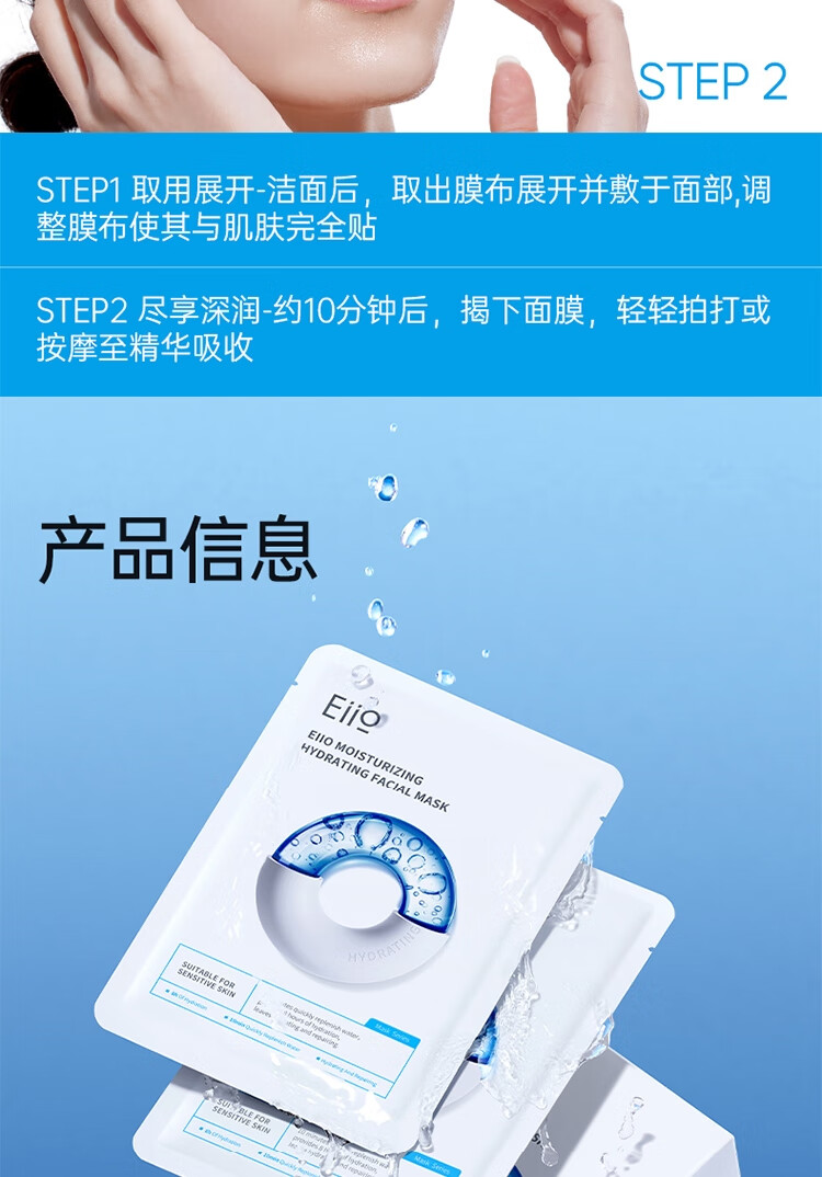 奕沃(EIIO) 水感快充补水面膜 滋润保湿 10片 白色(单位:盒)