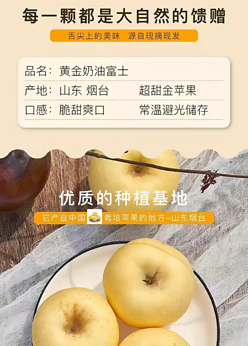民间造物 山东烟台 奶油富士苹果 大果 8斤 黄色(单位:箱)