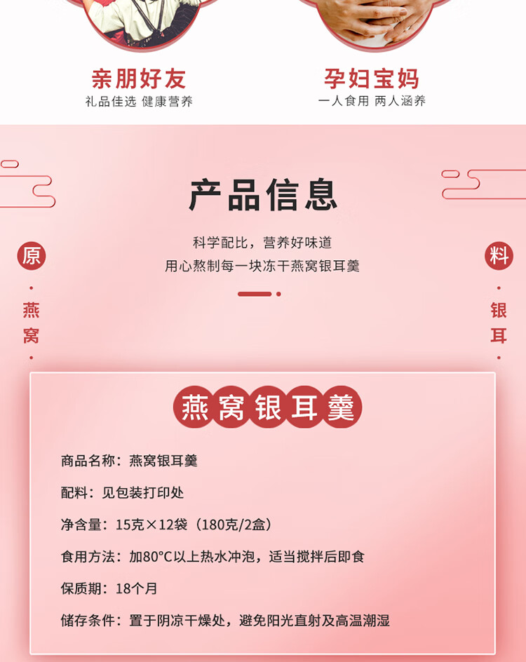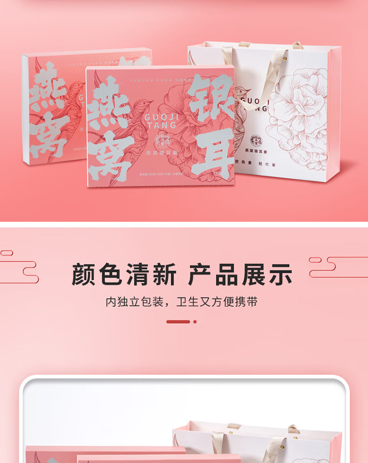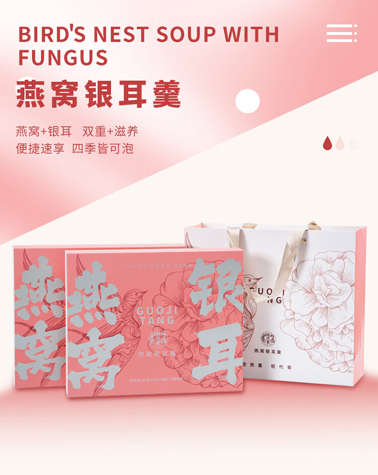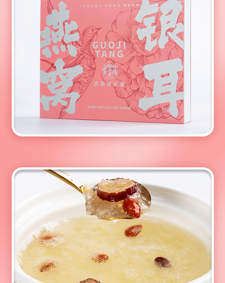 国济堂(GUOJITANG) 燕窝银耳羹 冻干即冲代餐 90g*2盒 粉色(单位:提)