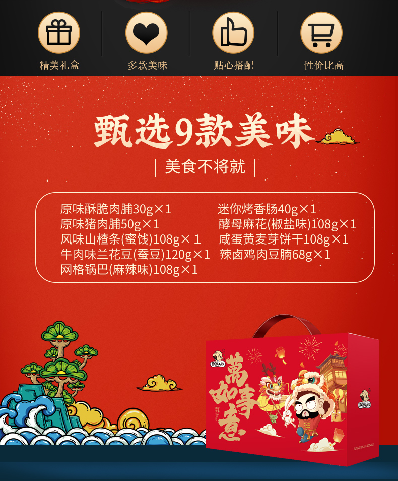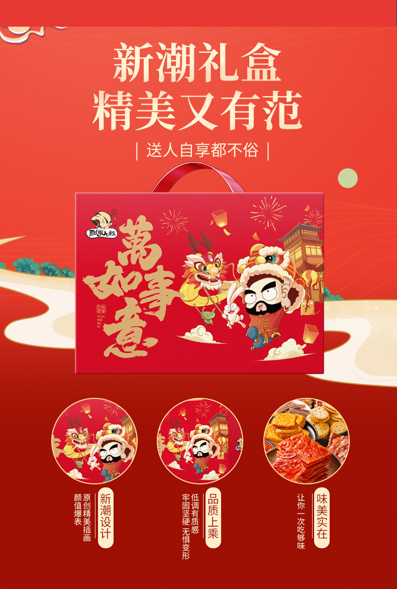 飘零大叔/PIAOLINGDASHU 休闲零食大礼包 万事如意 740g 红色(单位:盒)