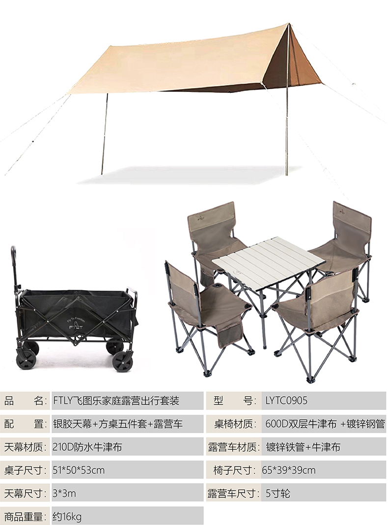 飞图乐(FTLY) 家庭露营出行套装(天幕+桌椅五件套+露营车) LYTC0905 16kg 混色(单位:套)