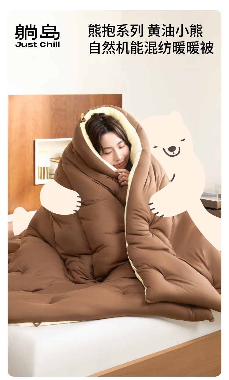 躺岛 熊抱系列 黄油小熊 自然机能混纺暖暖被 春秋款3.0(适宜室温 15-22℃) 150x200cm 浅蜜色与棕(单位:张)