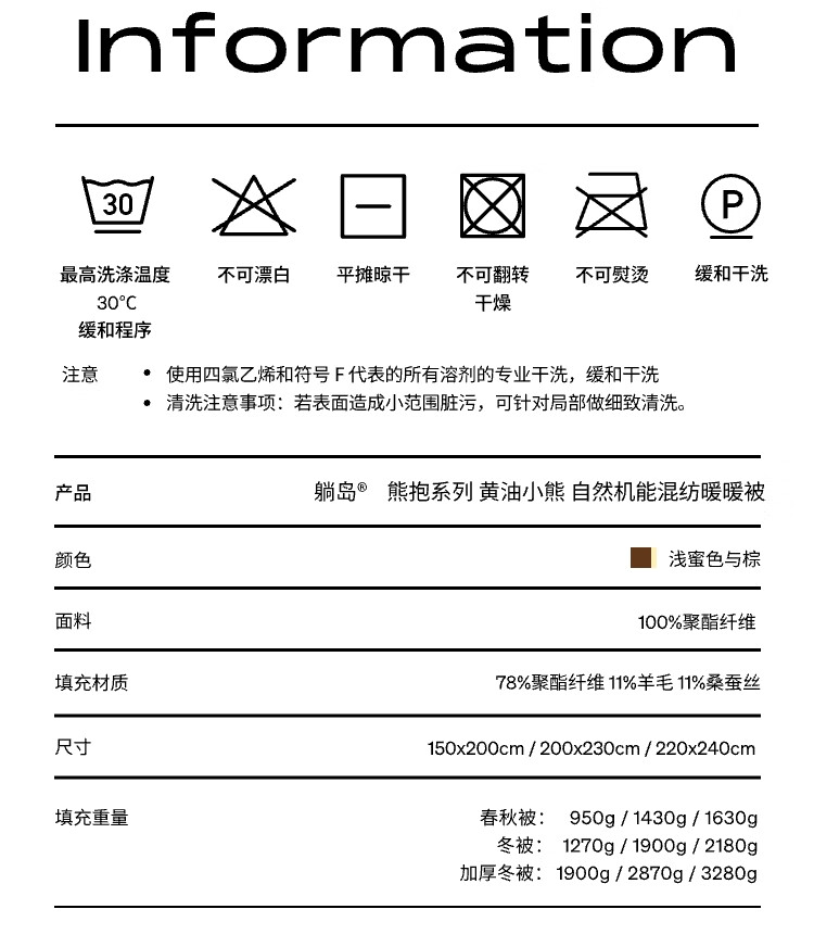 躺岛 熊抱系列 黄油小熊 自然机能混纺暖暖被 冬季款3.0(适宜室温 10-15℃) 200x230cm 浅蜜色与棕(单位:张)
