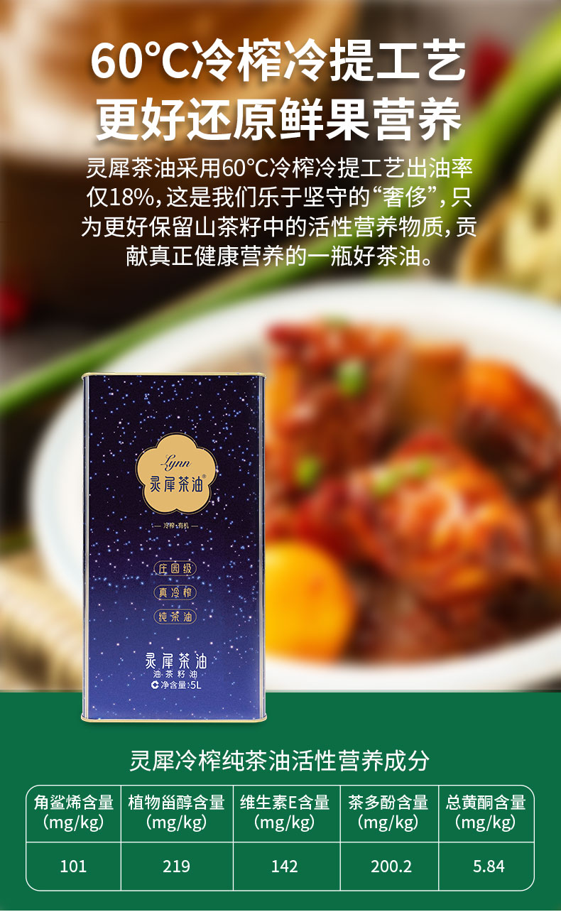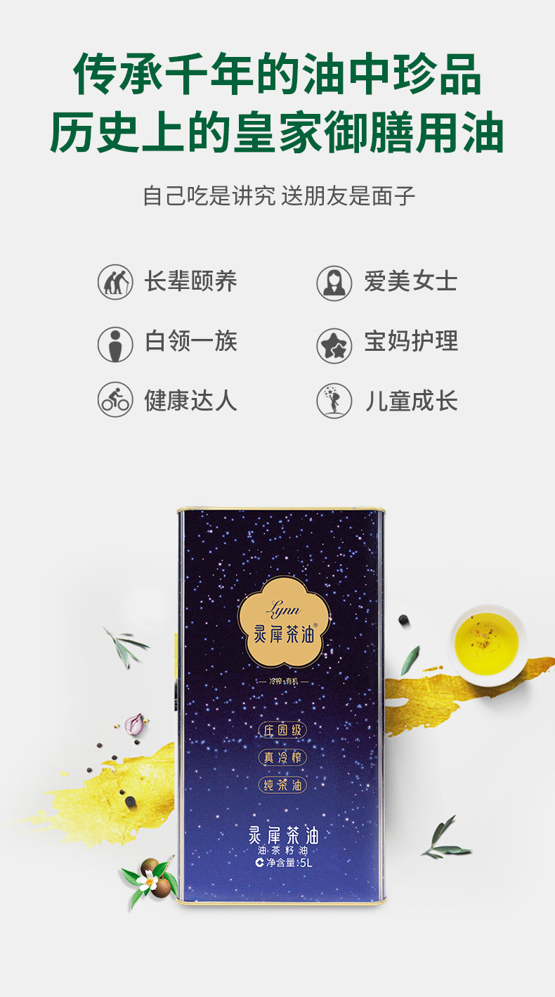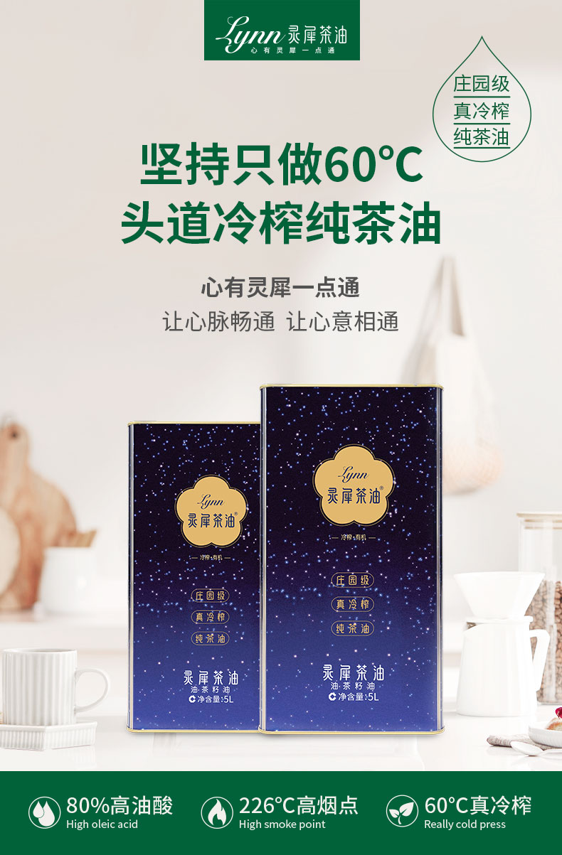 灵犀 家庭装 庄园级真冷榨纯茶油 5L*1罐 混色(单位:罐)