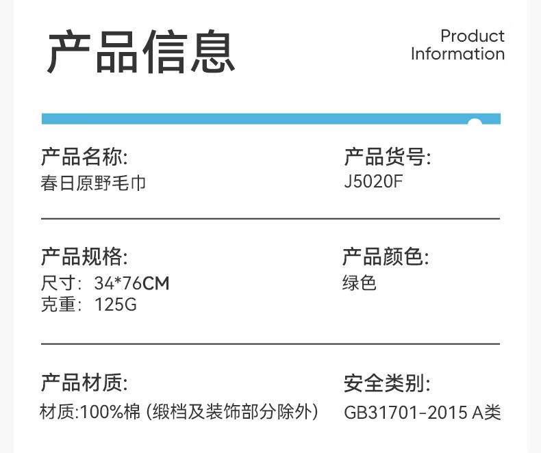 洁玉 春日原野毛巾单条礼盒装 J5020F-A 34*76cm(125G) 绿色(单位:盒)