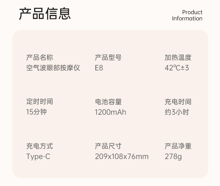 喜来康 空气波眼部按摩仪 E8 209*108*76mm 黑色(单位:台)