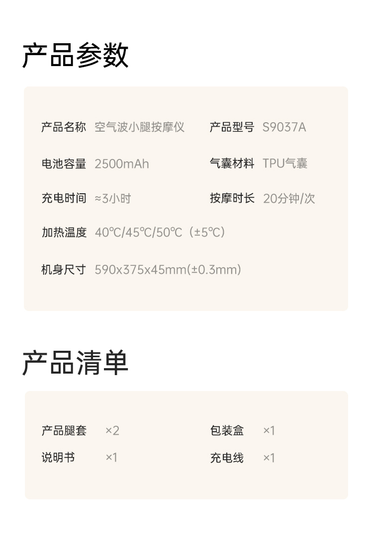 喜来康 空气波小腿按摩仪 S9037A 590*375*45mm 灰色(单位:台)